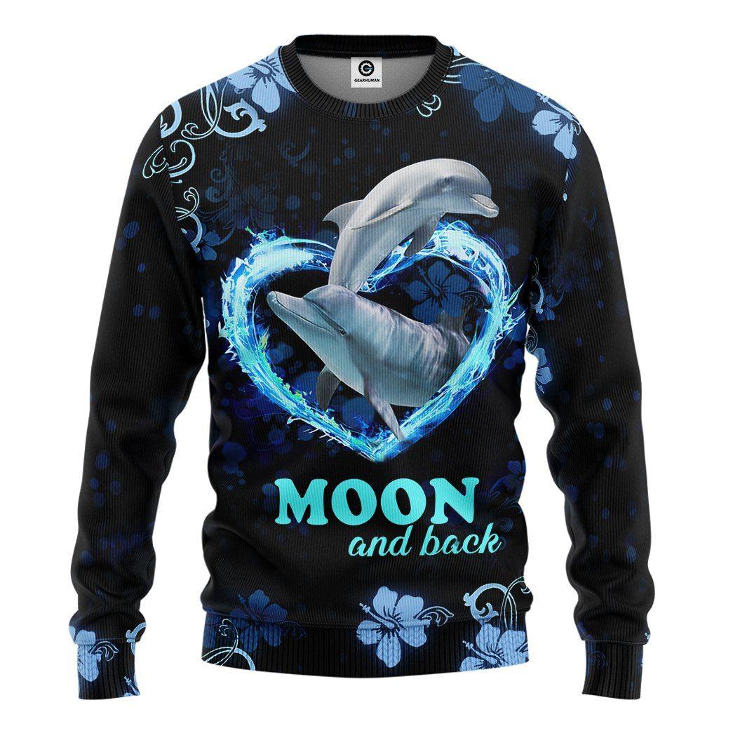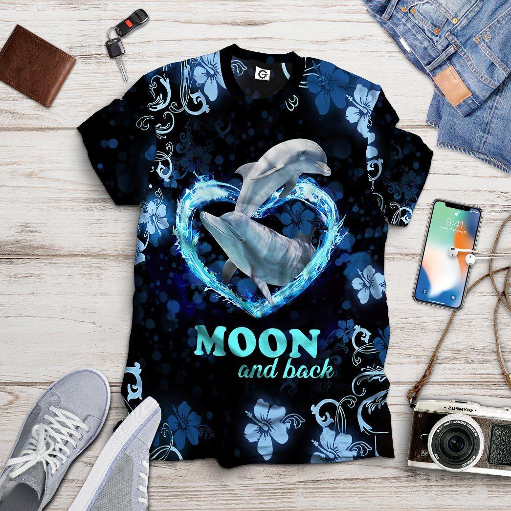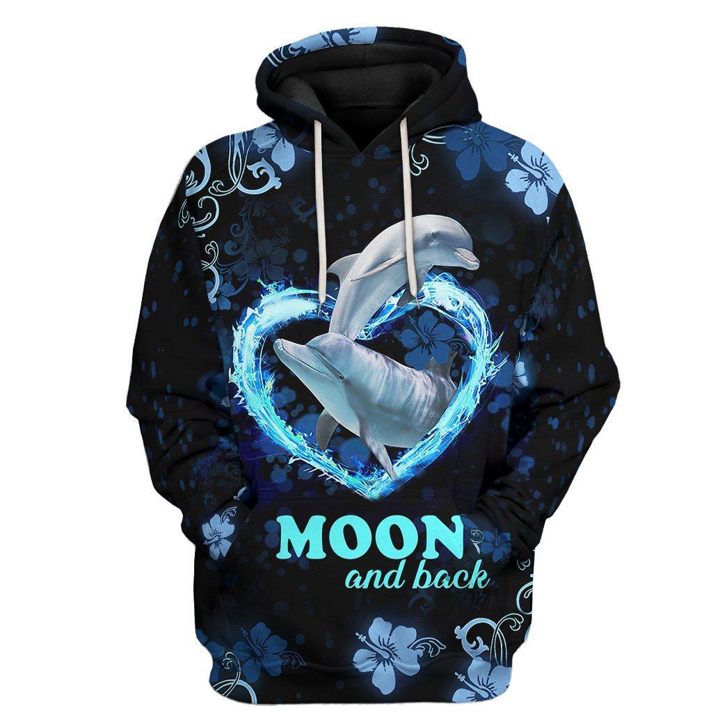 3D Moon And Back Couple Dolphin Tshirt Hoodie Apparel