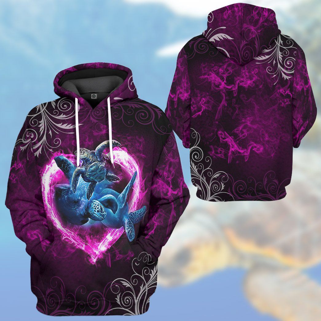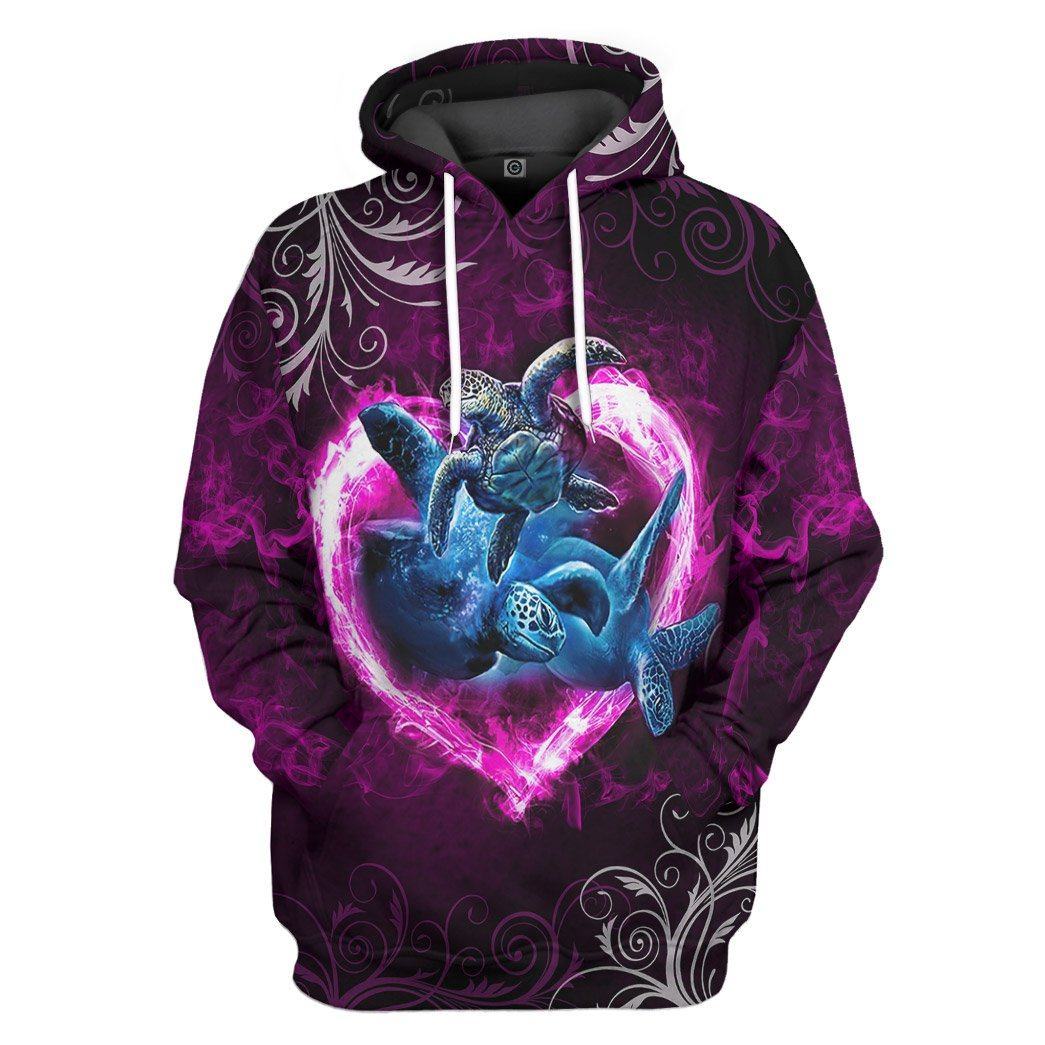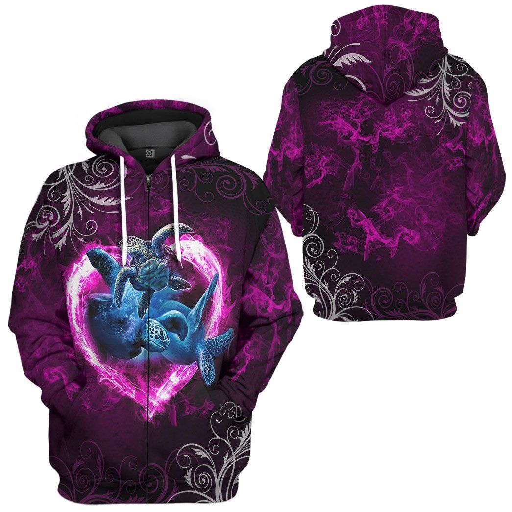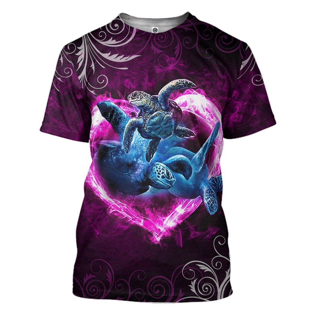 3D Pink Heart Sea Turtle Tshirt Hoodie Apparel