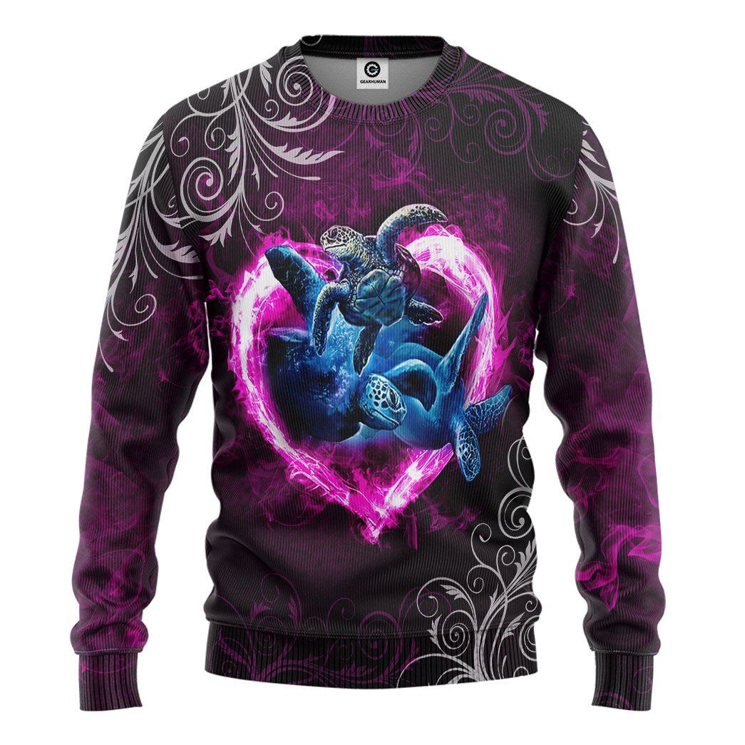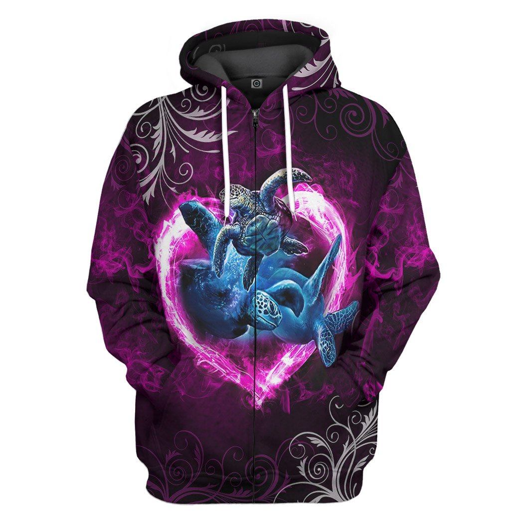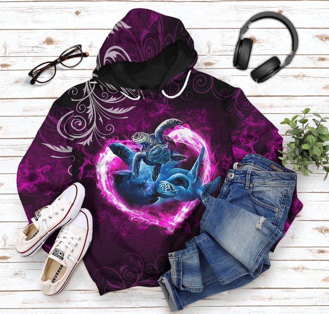 3D Pink Heart Sea Turtle Tshirt Hoodie Apparel