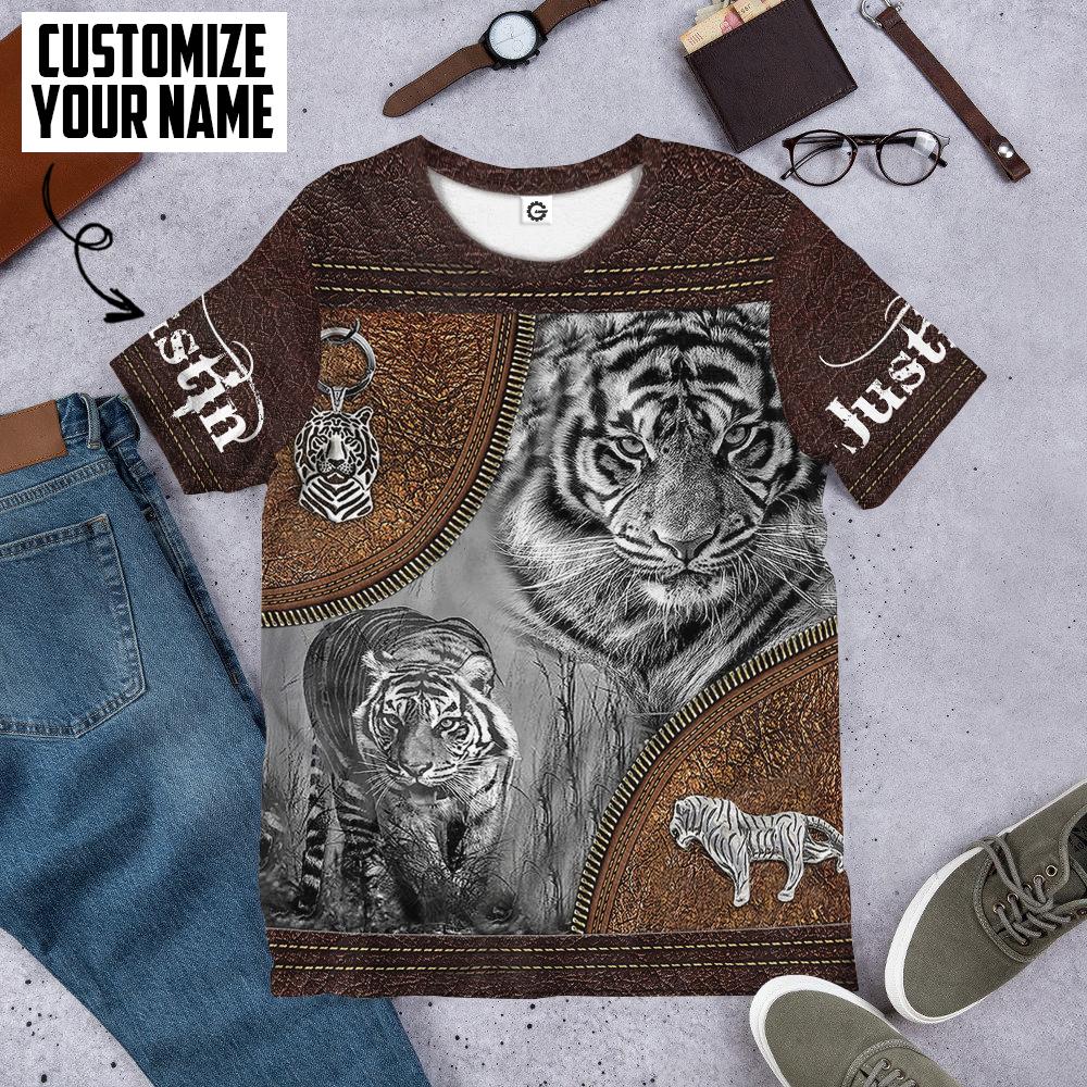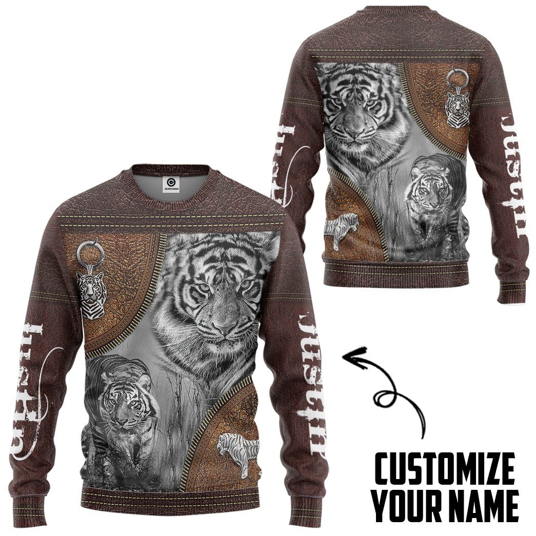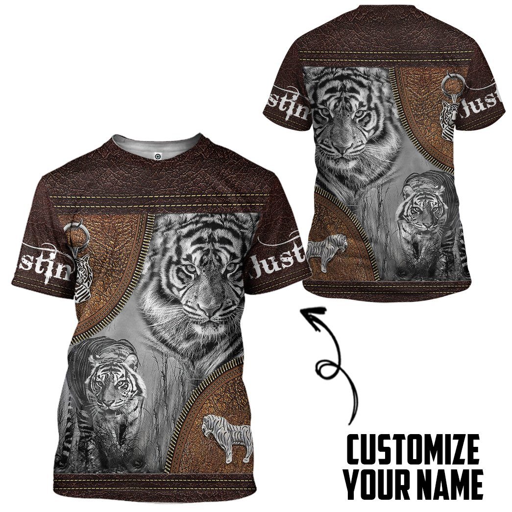 3D Tiger Leather Custom Name Tshirt Hoodie Apparel