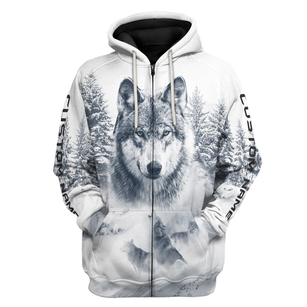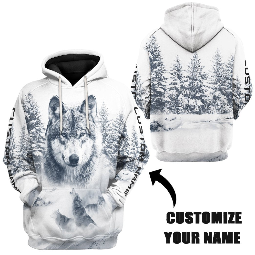 3D Wolf Snow Custom Name Tshirt Hoodie Apparel
