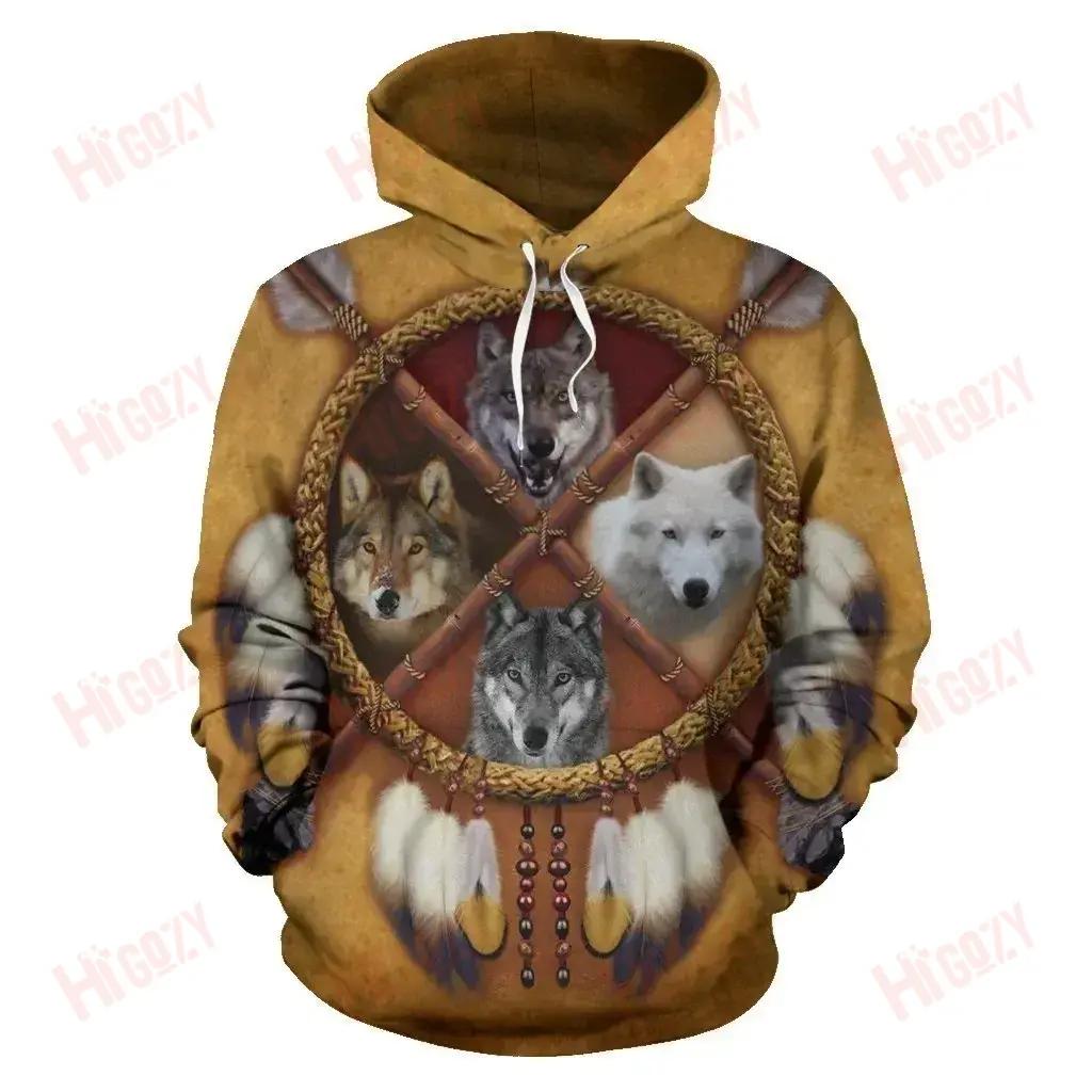 4 Wolves Native 3D All Over Printing Hoodies Clothing Store Sweatshirt Black Hoodie, Hoodies For Girls