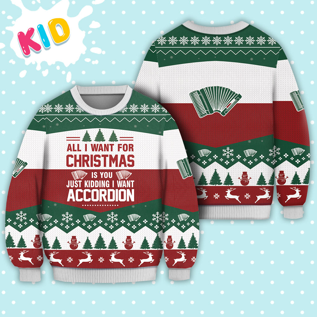 Accordion All I Want For Christmas Ugly Christmas Sweater – Christmas Graphic Sweater