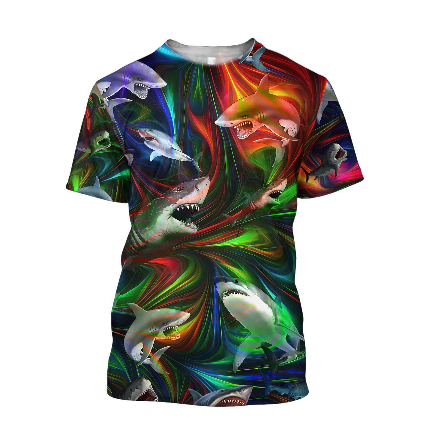 Amazing Colorful Shark Over Printed Hoodie Tshirt For Men And Women-Ml