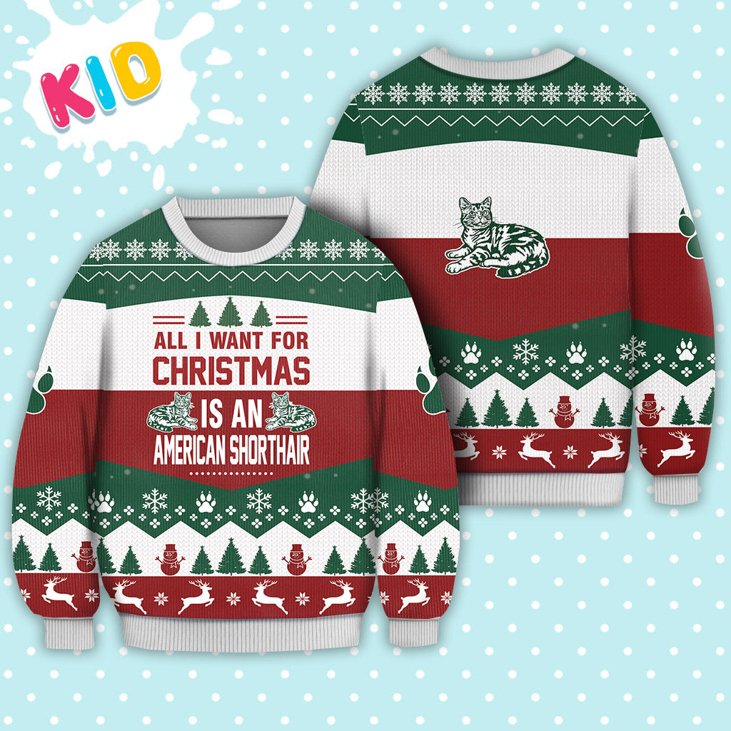 American Shorthair Cat All I Want For Christmas Ugly Christmas Sweater – Christmas Graphic Sweater