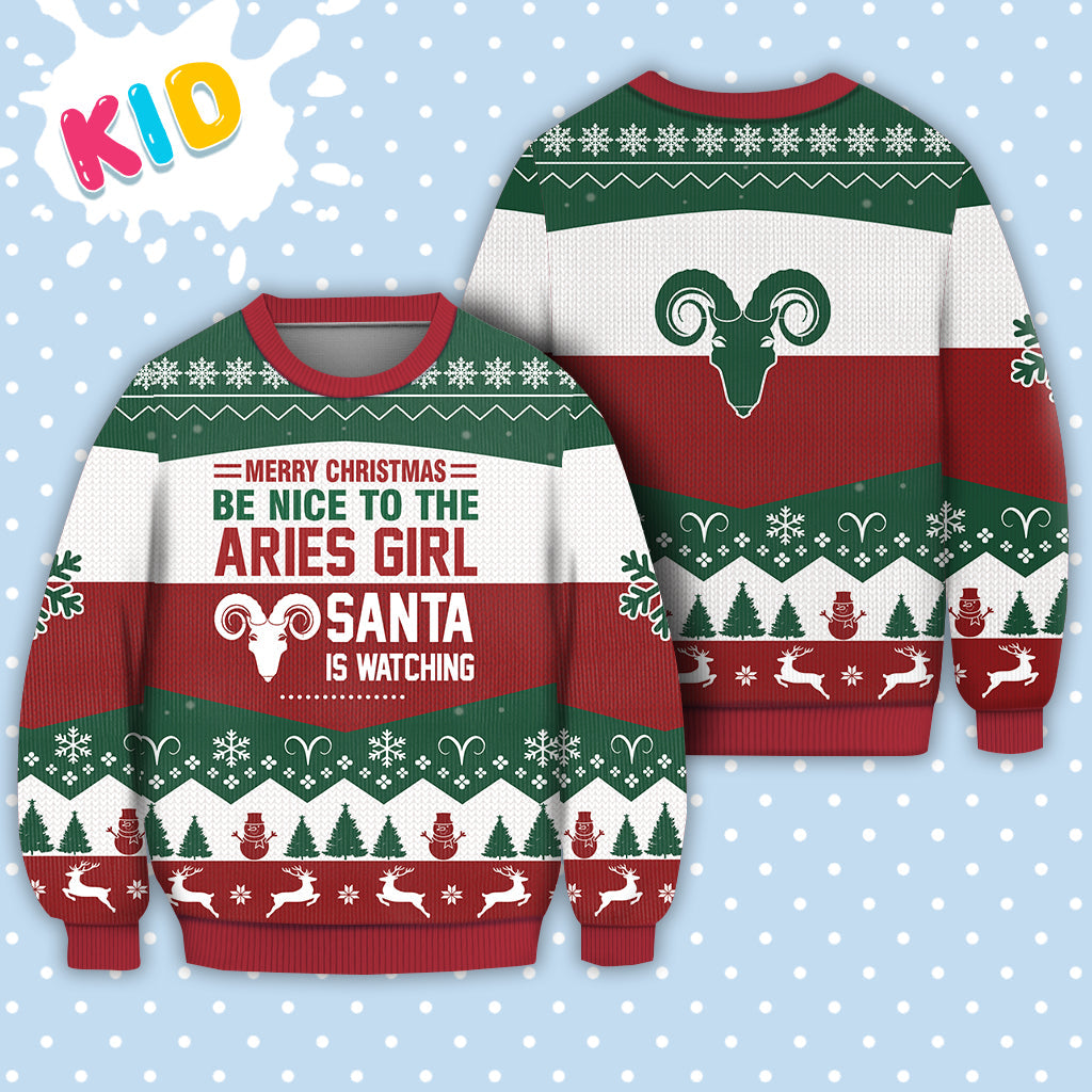 Aries Girl All Merry Christmas Be Nice Ugly Christmas Sweater – Christmas Graphic Sweater