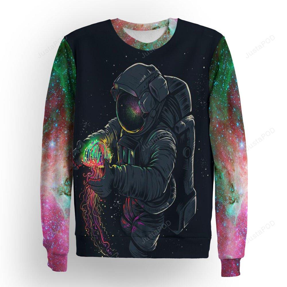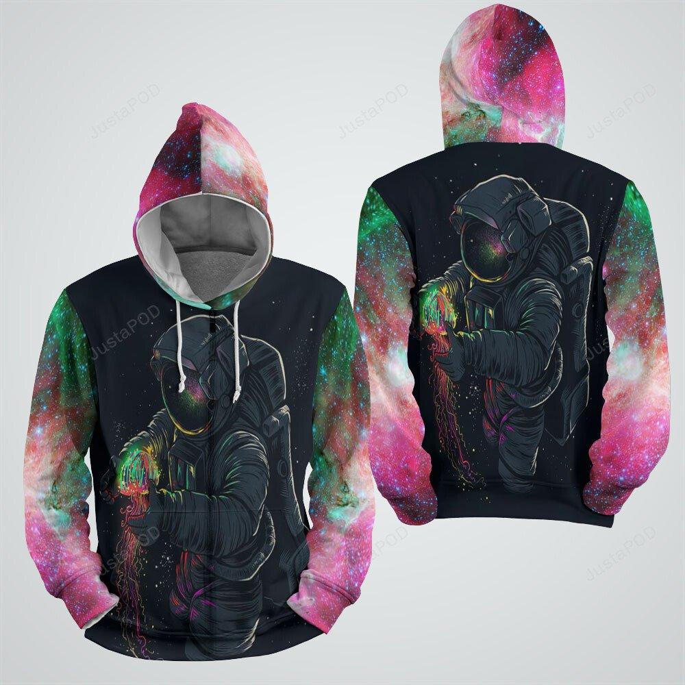 Astronaut And Glowing Jellyfish In Outer Space 3D Full Over Print Hoodie Zip Hoodie Sweater Tshirt