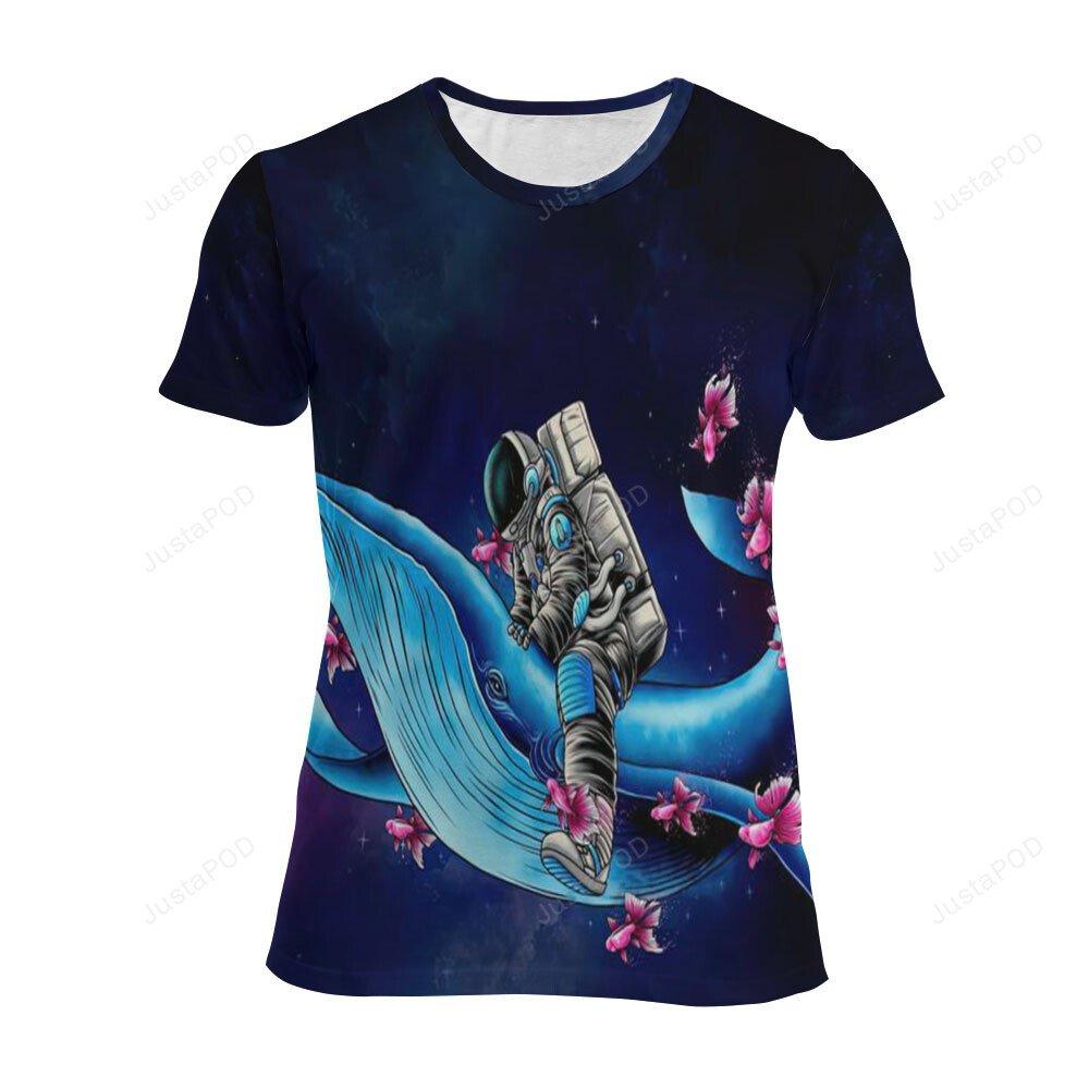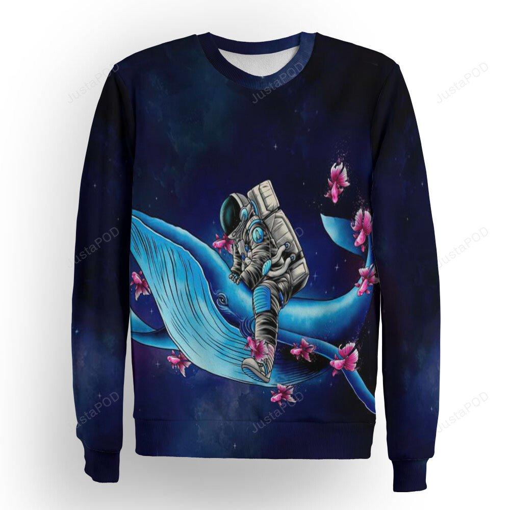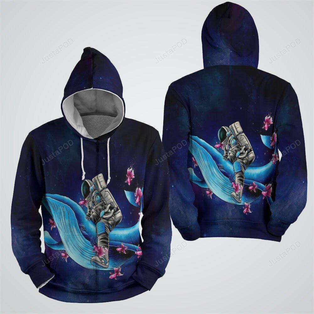 Astronaut And Whale In Galaxy Illustration 3D Full Over Print Hoodie Zip Hoodie Sweater Tshirt