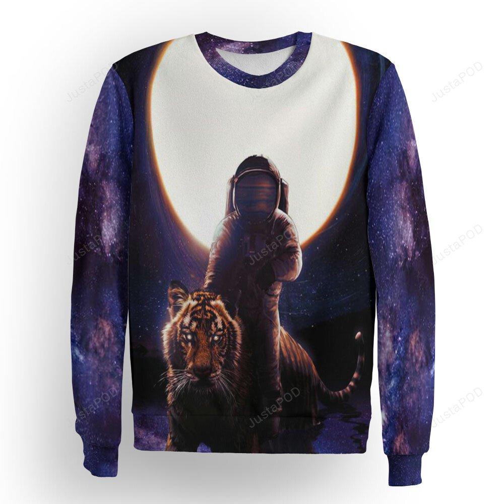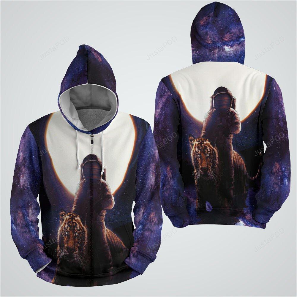 Astronaut On A Tiger Illustration 3D Full Over Print Hoodie Zip Hoodie Sweater Tshirt