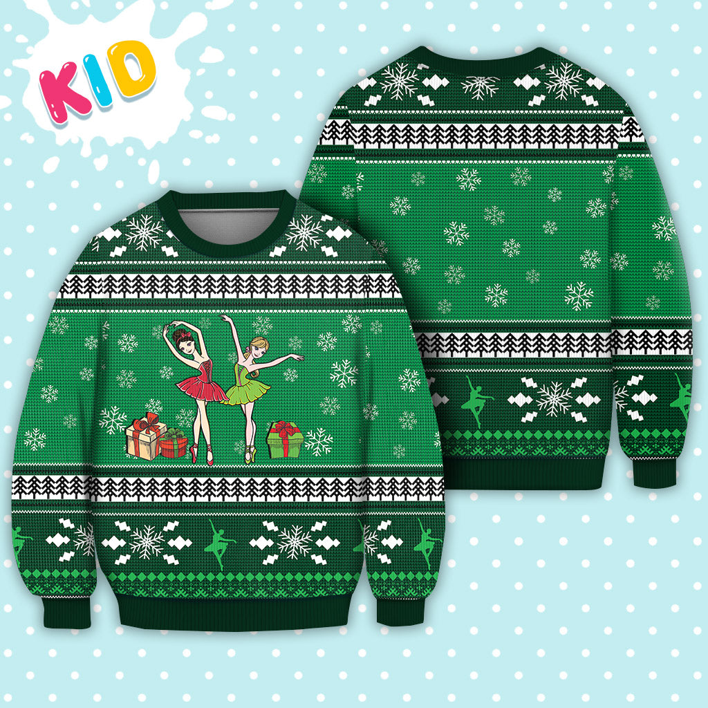 Ballet Dance Christmas Pattern Falling Snowflakes Ugly Christmas Sweater – Christmas Graphic Sweater