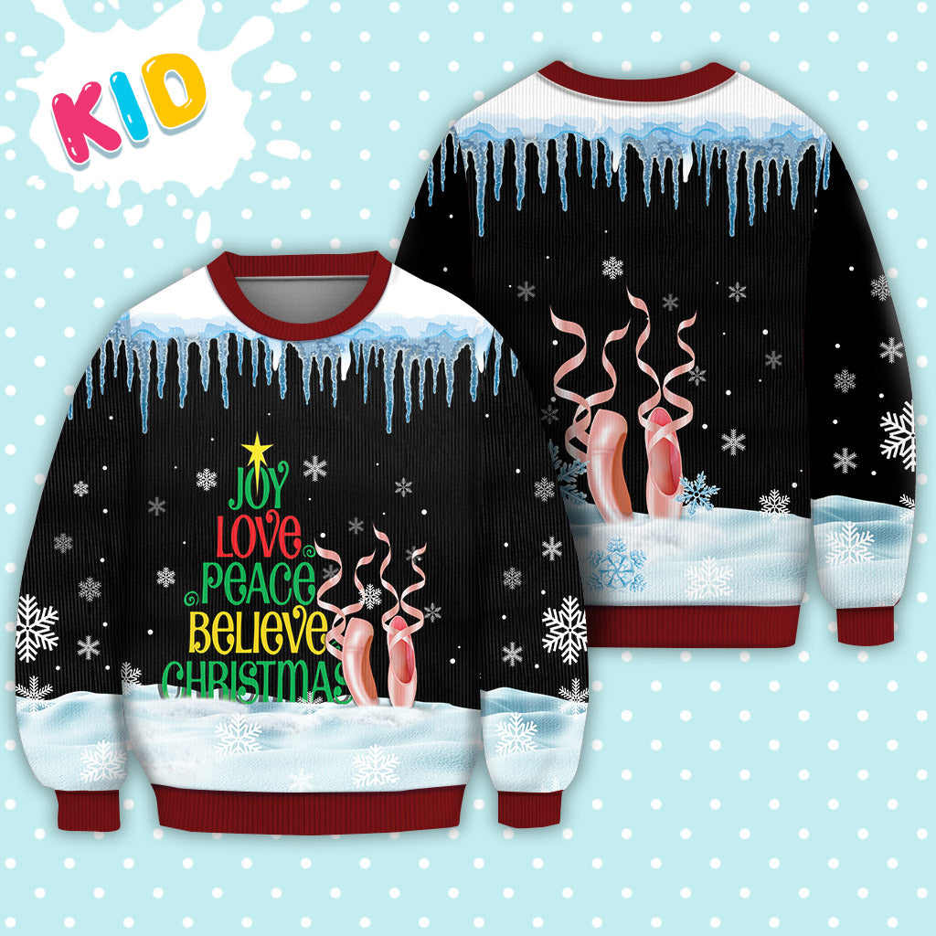 Ballet Dance Joy Love Peace Believe Christmas Ugly Christmas Sweater – Christmas Graphic Sweater