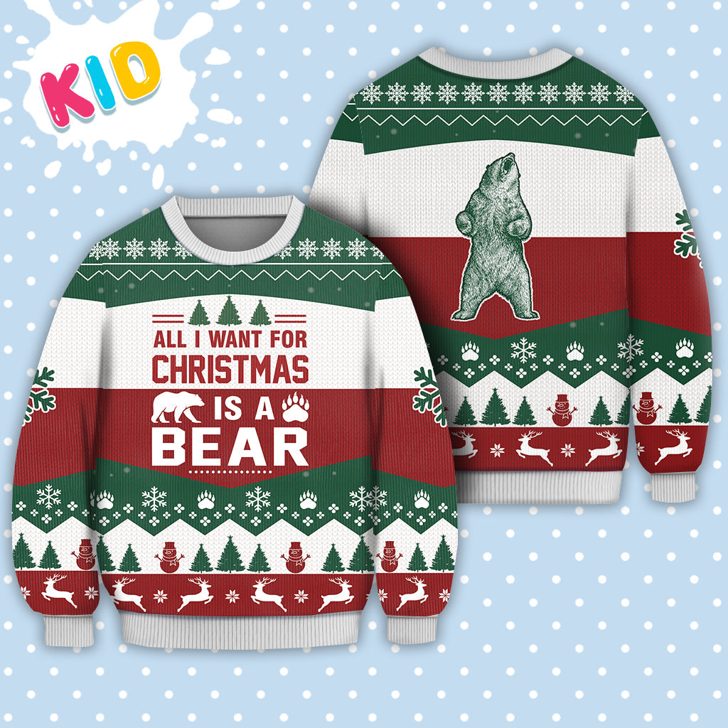 Bear All I Want For Christmas Ugly Christmas Sweater – Christmas Graphic Sweater