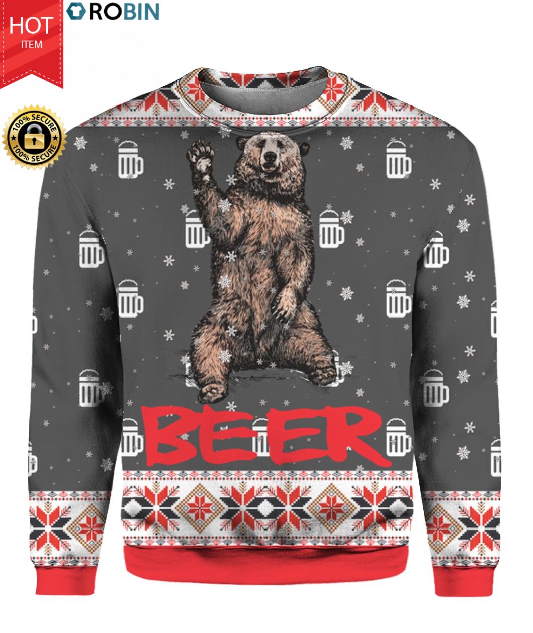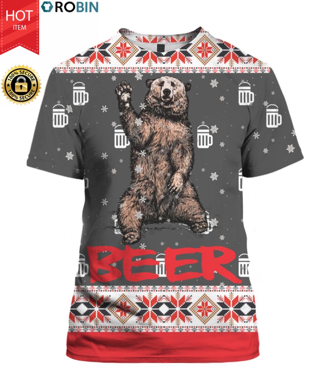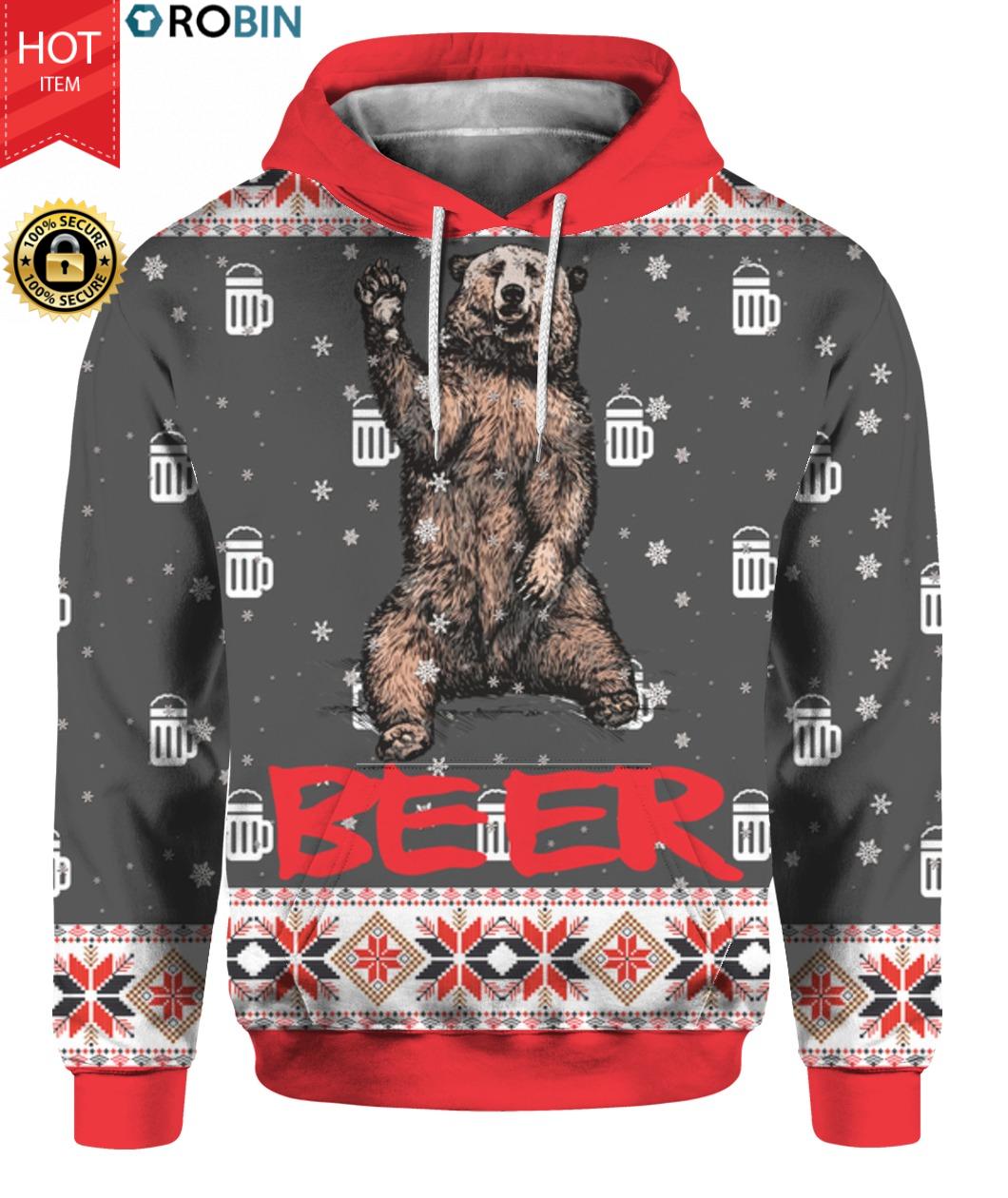 Bear Beer 3D Ugly Christmas Sweater Hoodie