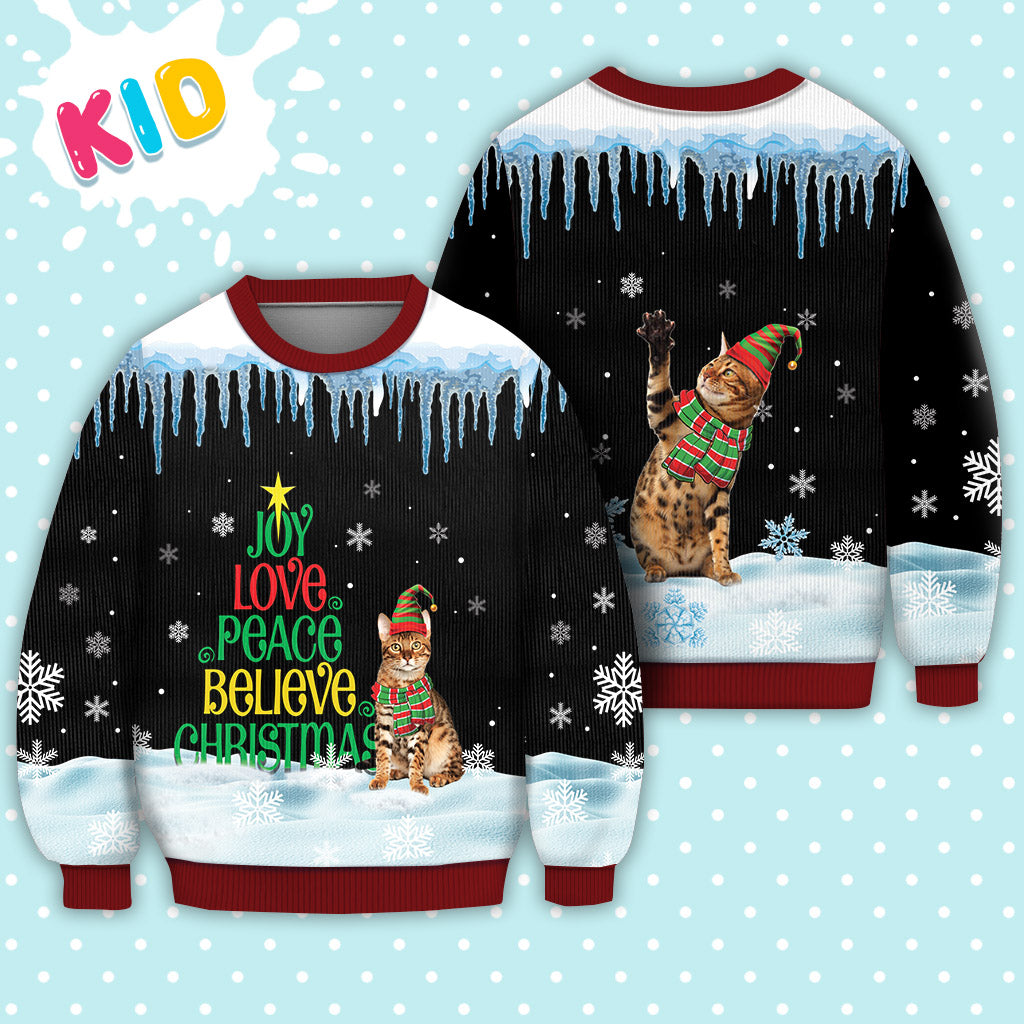 Bengal Cat Joy Love Peace Believe Christmas Ugly Christmas Sweater – Christmas Graphic Sweater