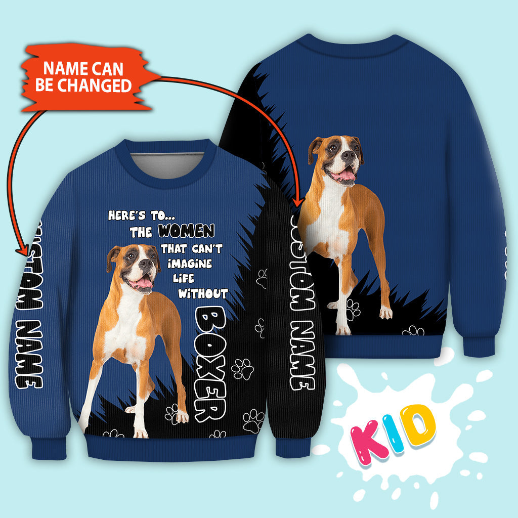 Boxer 3D Dog Lover Blue Black Sweatshirt Knitted Ugly Christmas Sweater – Christmas Graphic Sweater