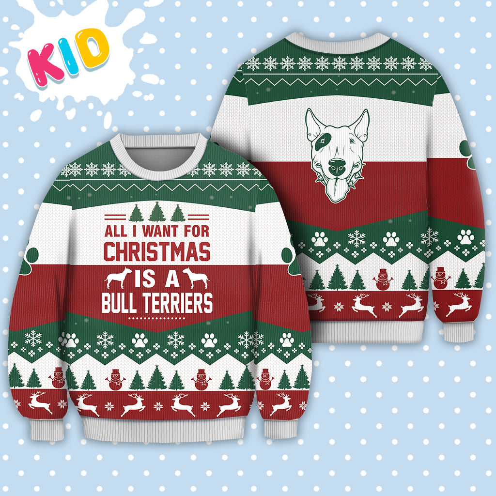 Bull Terriers All I Want For Christmas Ugly Christmas Sweater – Christmas Graphic Sweater