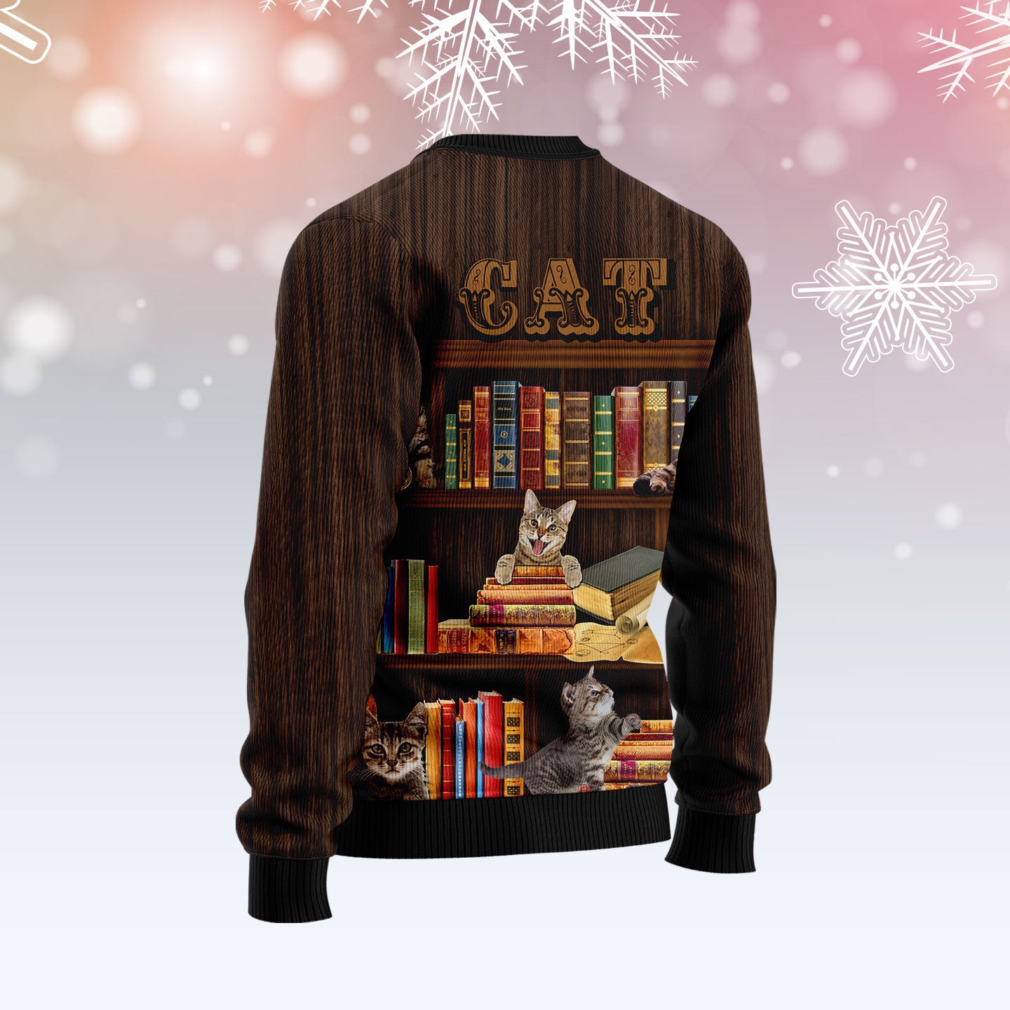 Cat Bookcase Ugly Christmas Sweater – Gift For Christmas