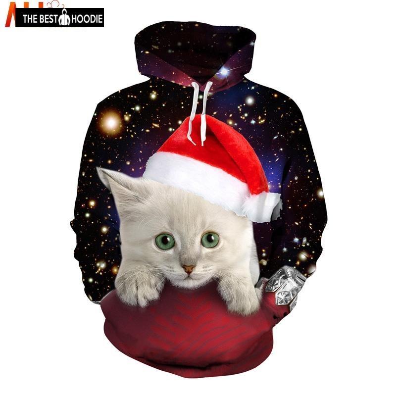 Christmas White Cat Hoodies 3D Print Hoody Sweatshirt Eur Size Tops Alisister Cute Animal Unisex Hip Hop Tracksuit Pullover Sh7202