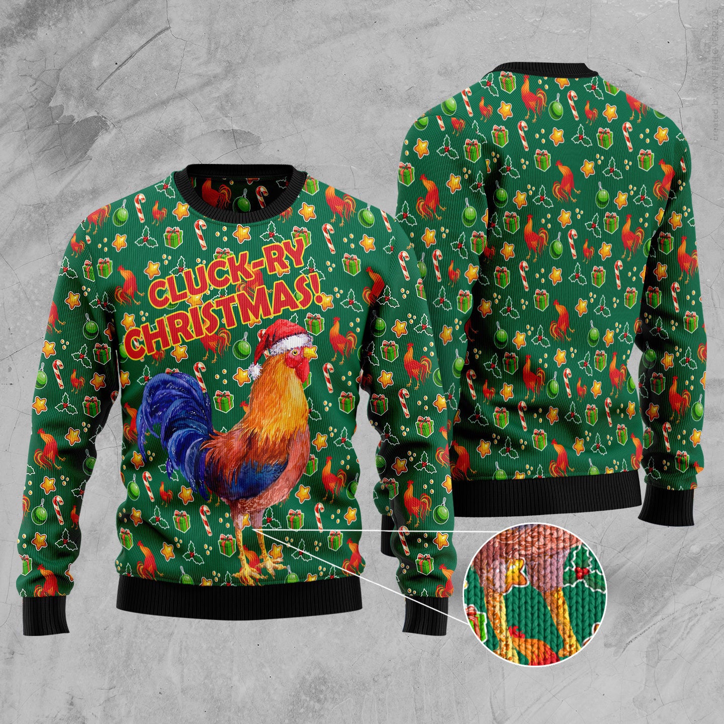 Cluck-Ry Christmas Ugly Christmas Sweater – Christmas Crewneck Sweater – Gift For Christmas