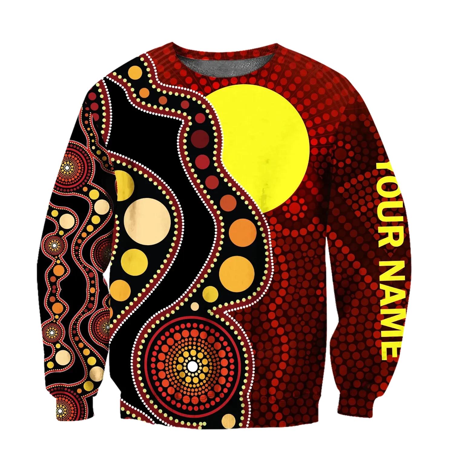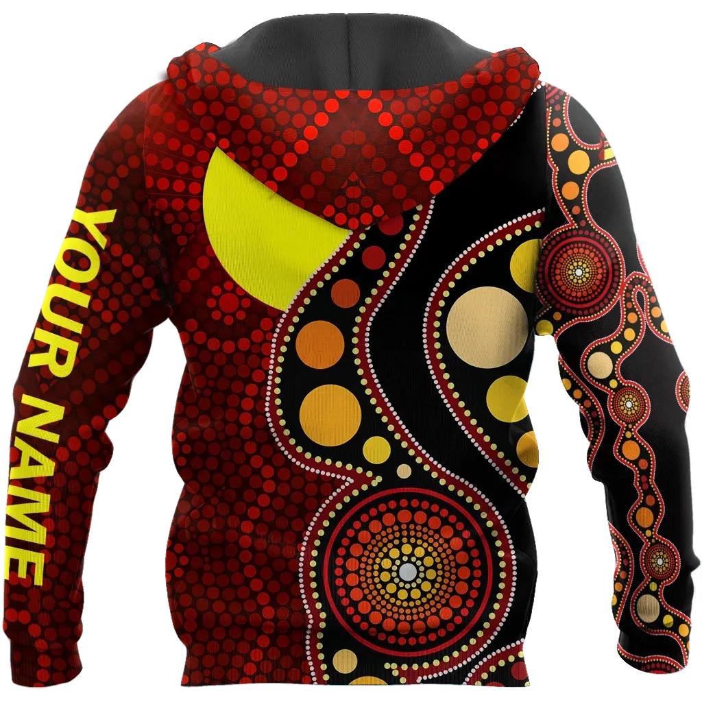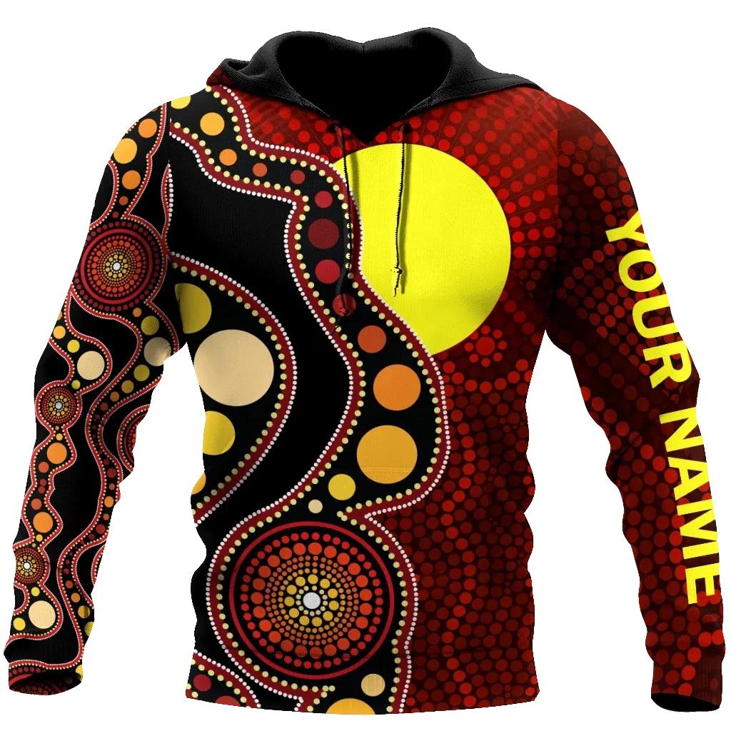 Custom Name Aboriginal Flag Circle Dot Painting Art 3D Design Hoodies Clothing Store Sweatshirt Cool Hoodies, Hoodies For Men