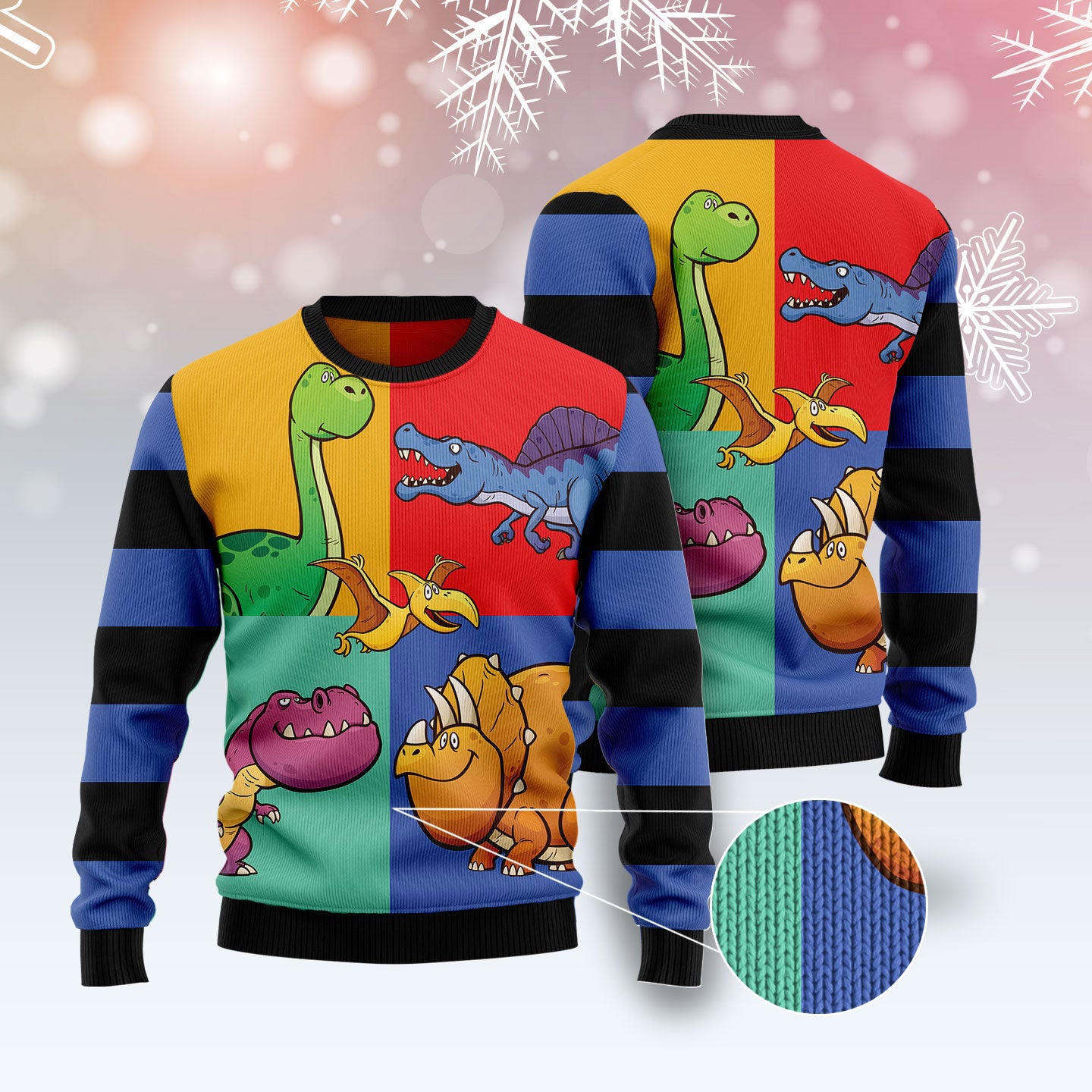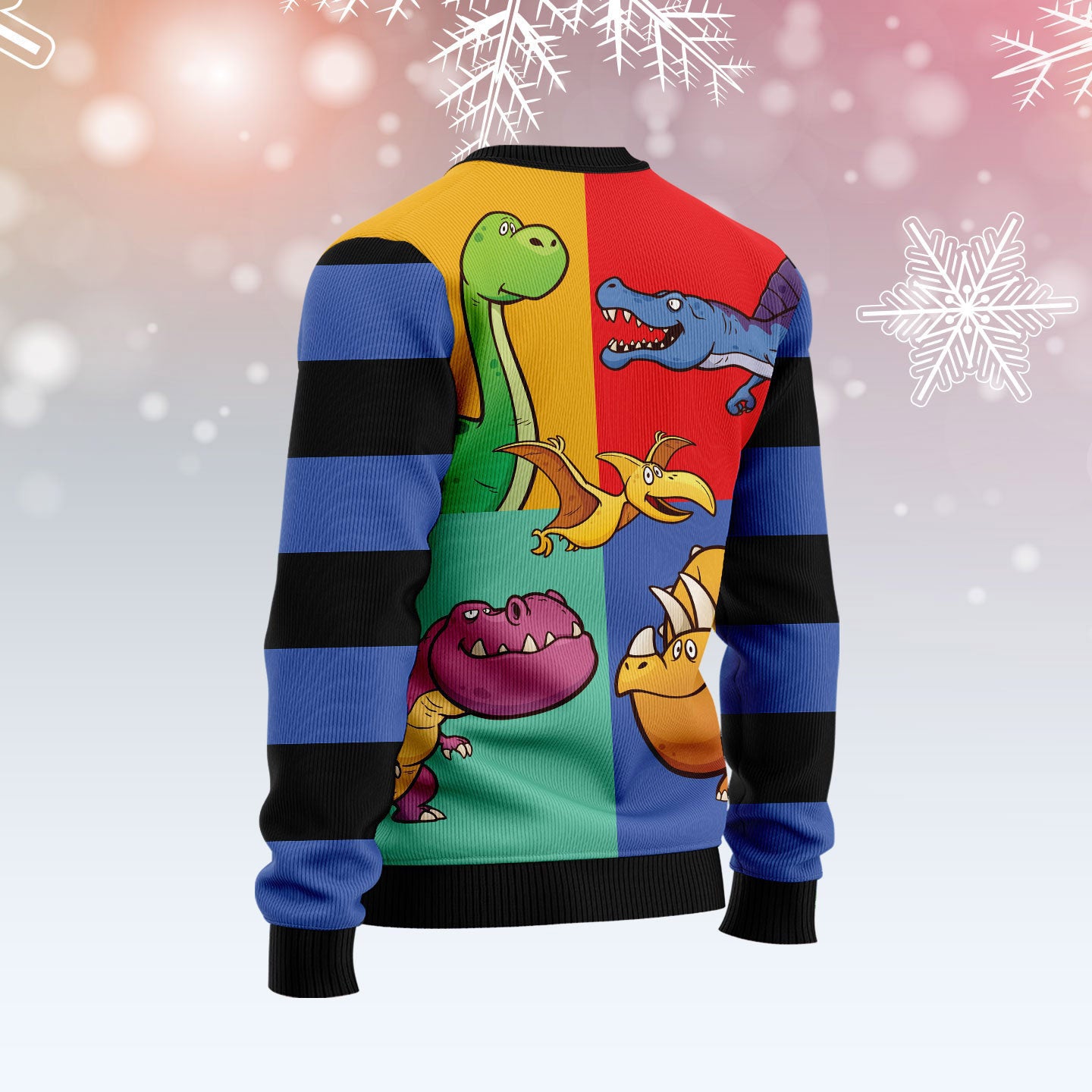 Dinosaur Color Christmas Graphic Sweater – Tis The Season Christmas Sweater – Ugly Christmas Sweater