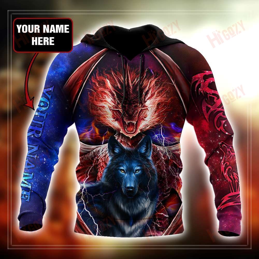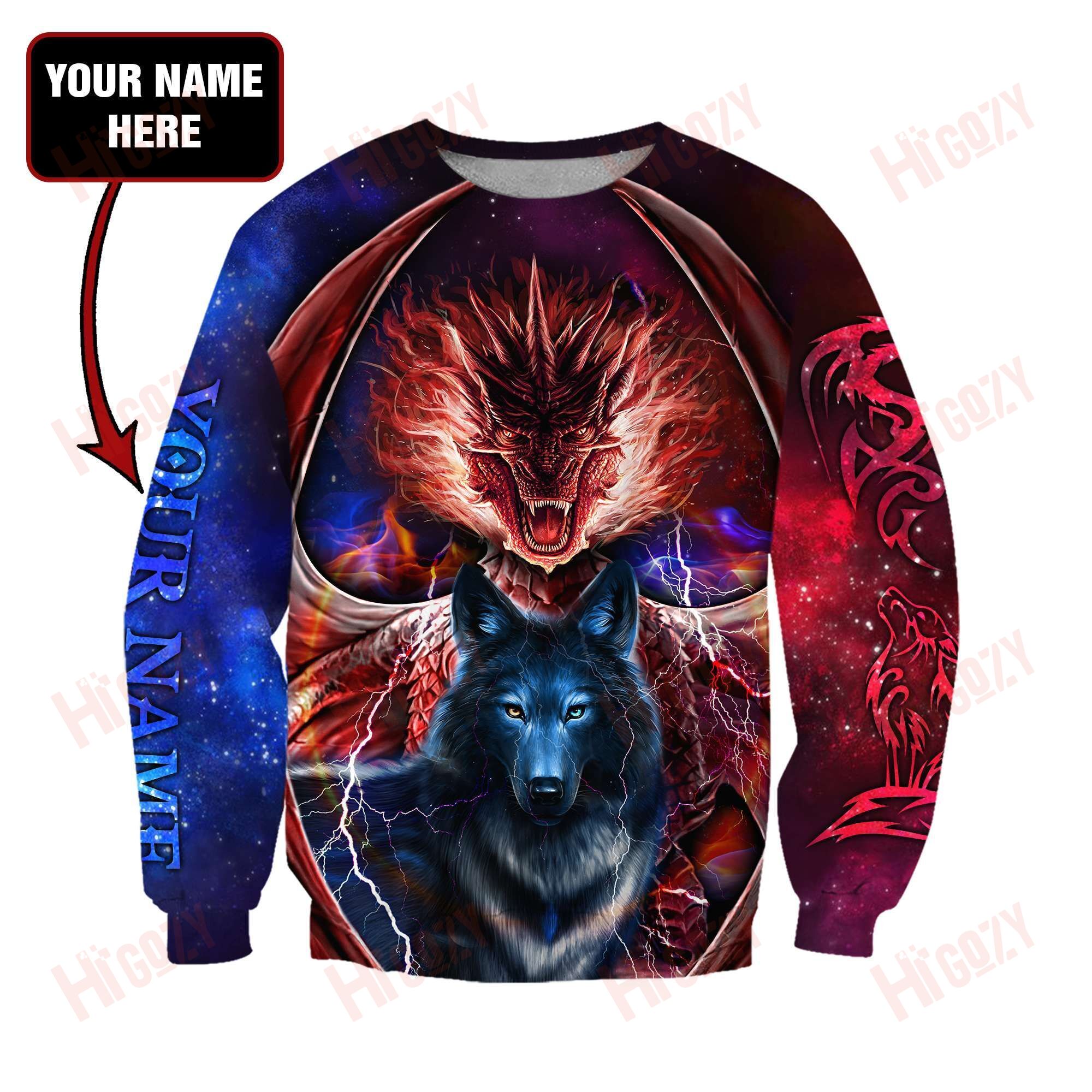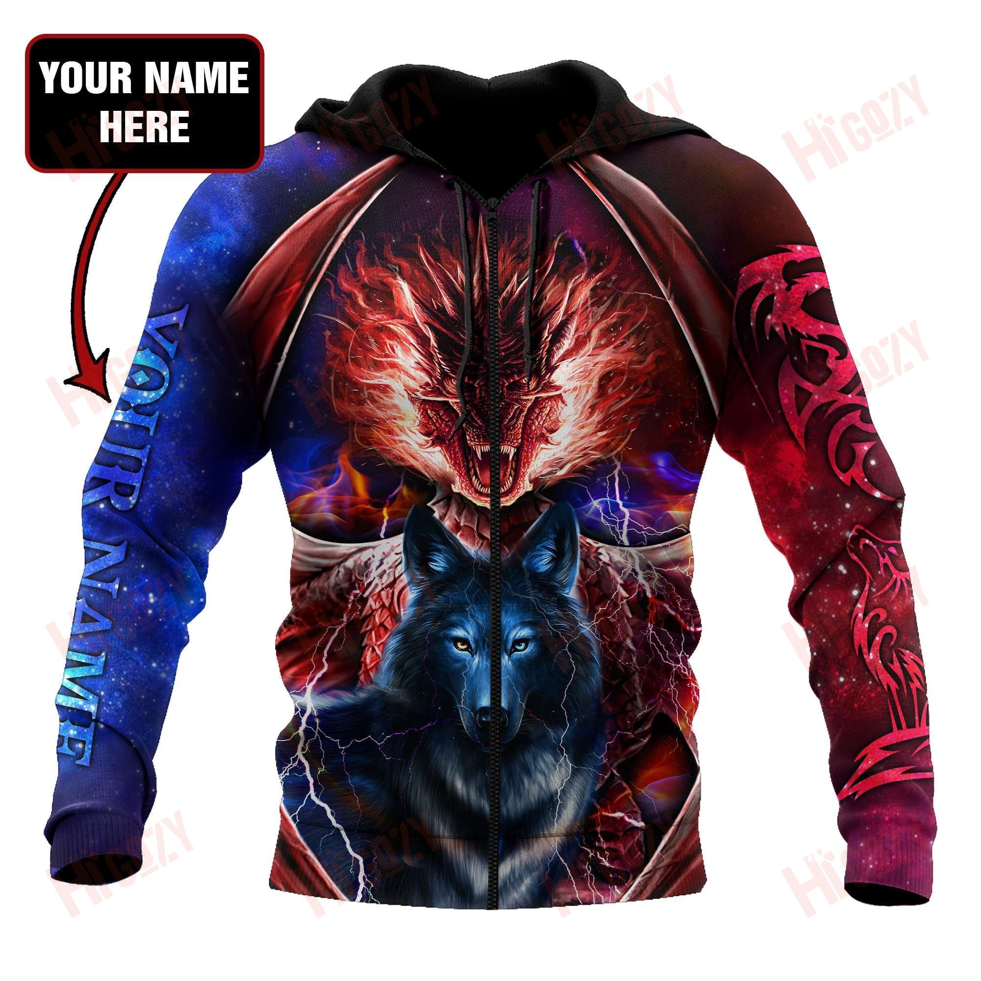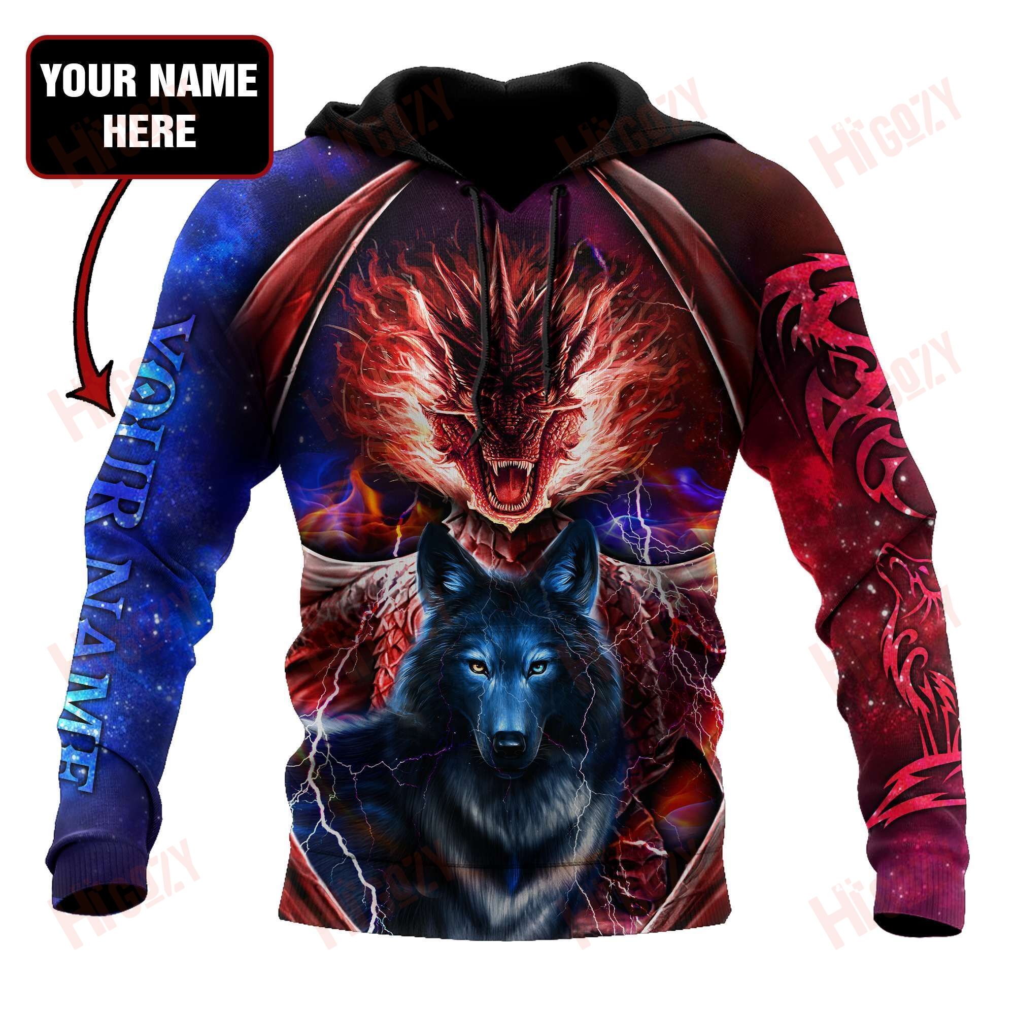 Dragon And Wolf 3D Over Printed Hoodie Clothing Sweatshirt Cool Hoodies, Hoodies For Girls