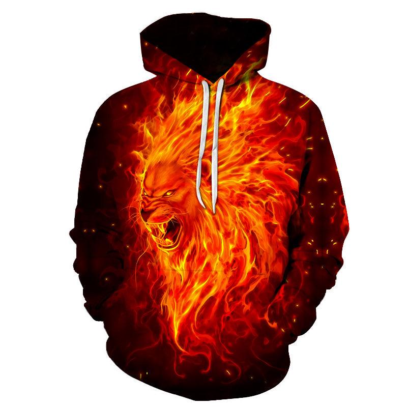 Fire Lion 3D Graphic Hoodie All-Over Print Hoodie Pullover Sweatshirt Ideal Present