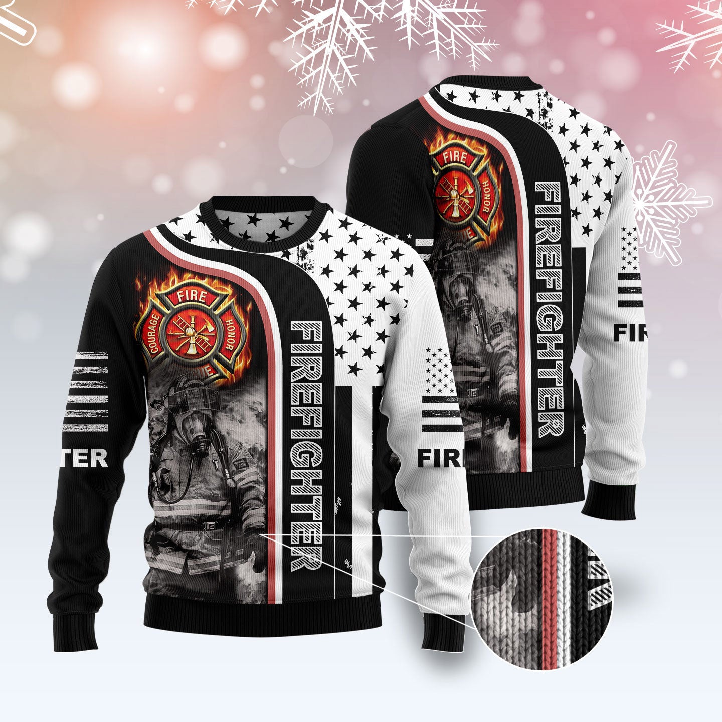 Firefighter Awesome Christmas Graphic Sweater – Tis The Season Christmas Sweater – Ugly Christmas Sweater