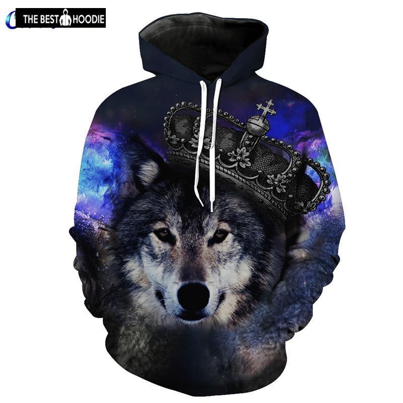 Funny Crown Wolf Fashion Hoodie Galaxy Wanderer Pullover Fall Sweatshirt Sh6052