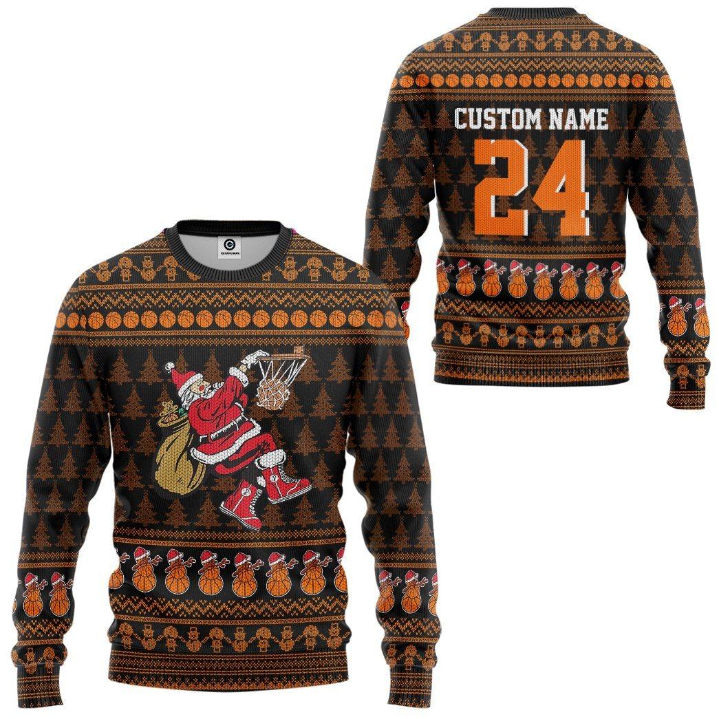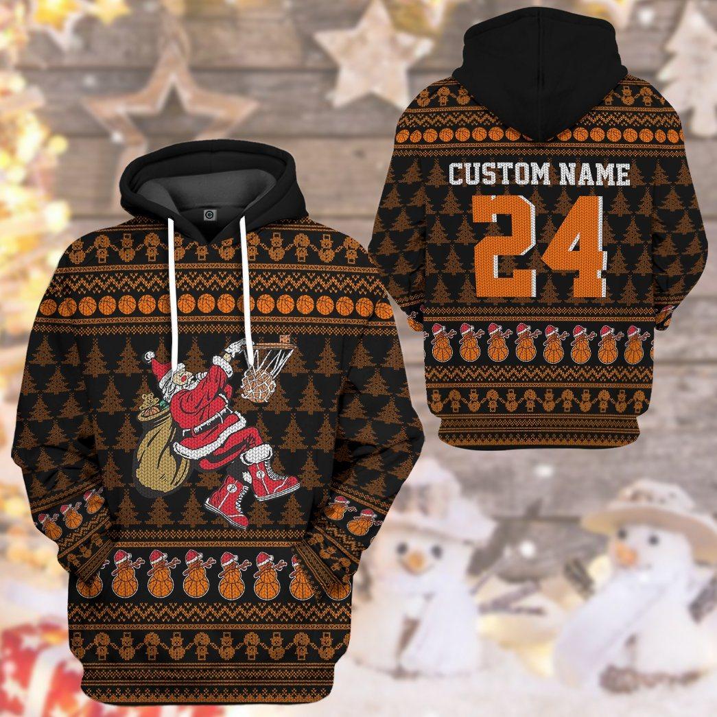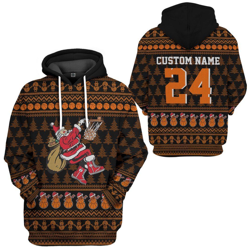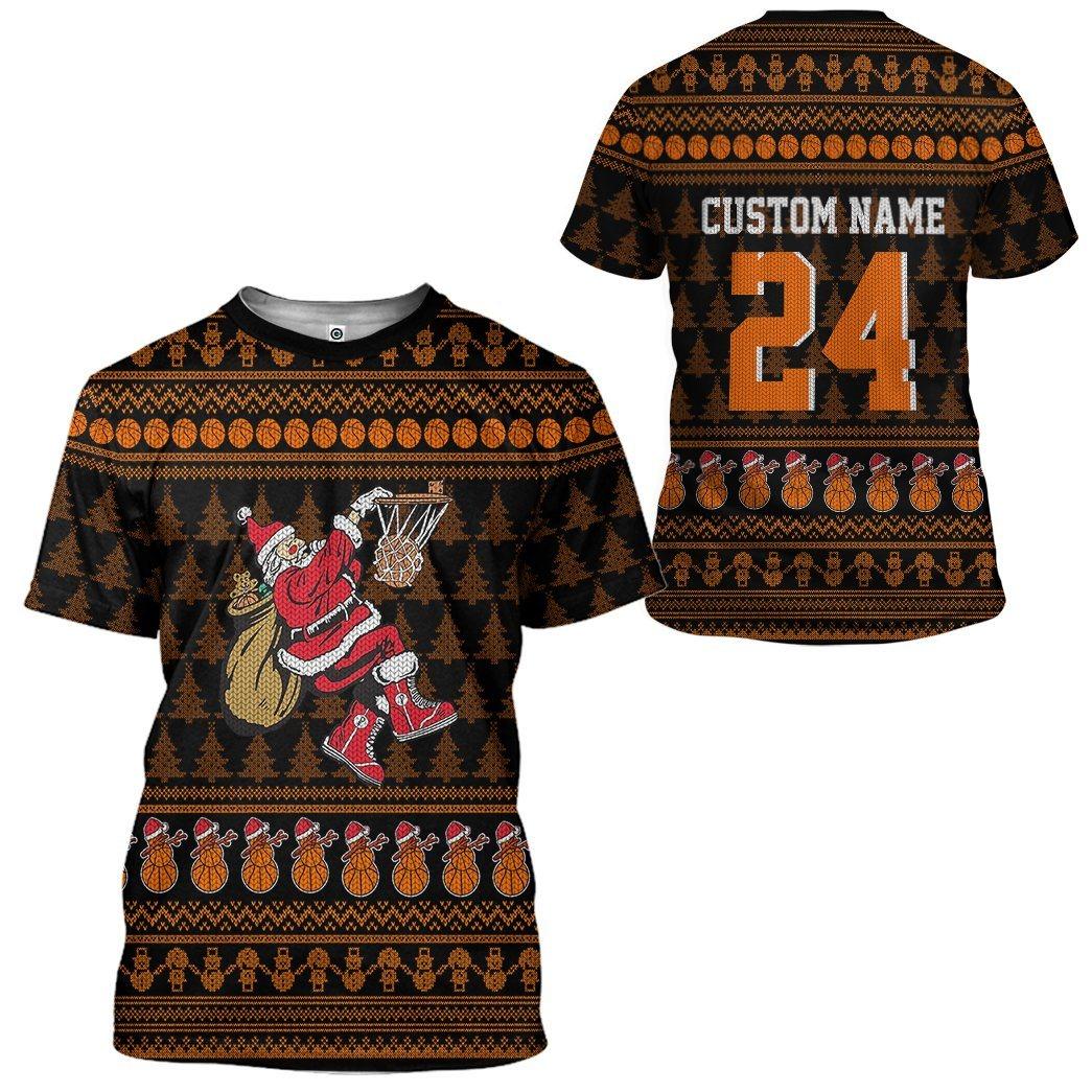 Gearhumans 3D 24 Kb Santa Claus Basketball Xmas Ugly Sweater Custom Name Tshirt Hoodie Apparel