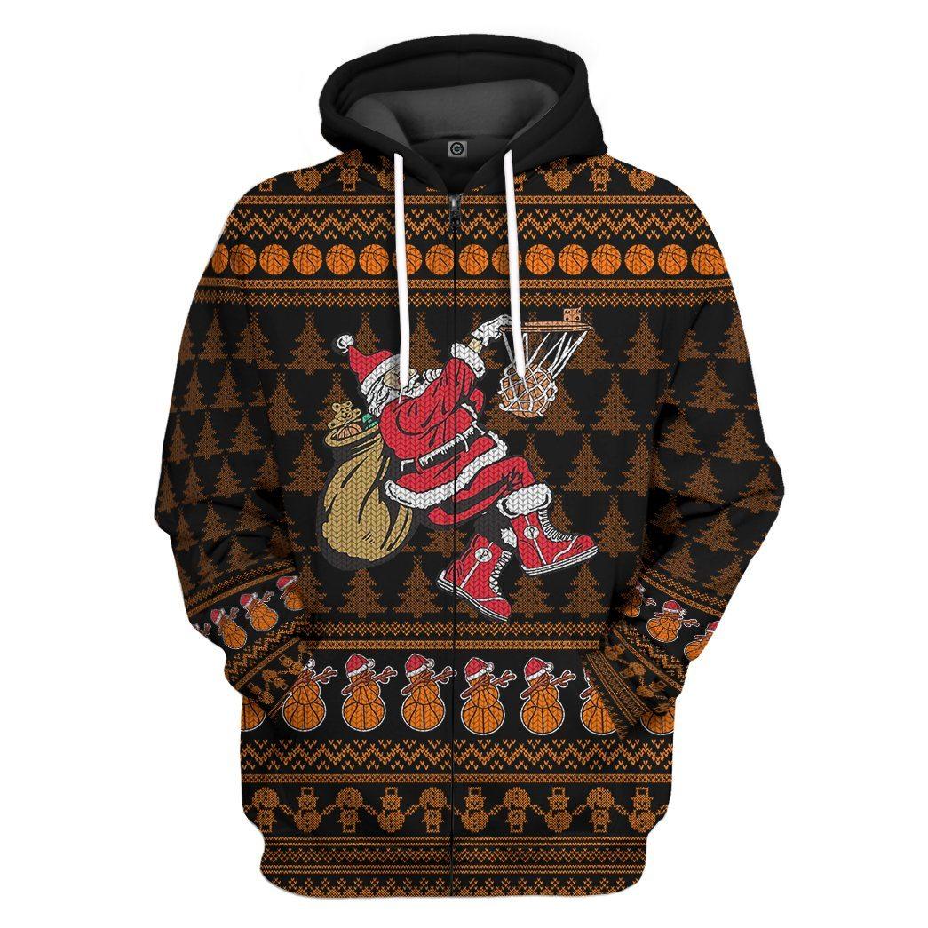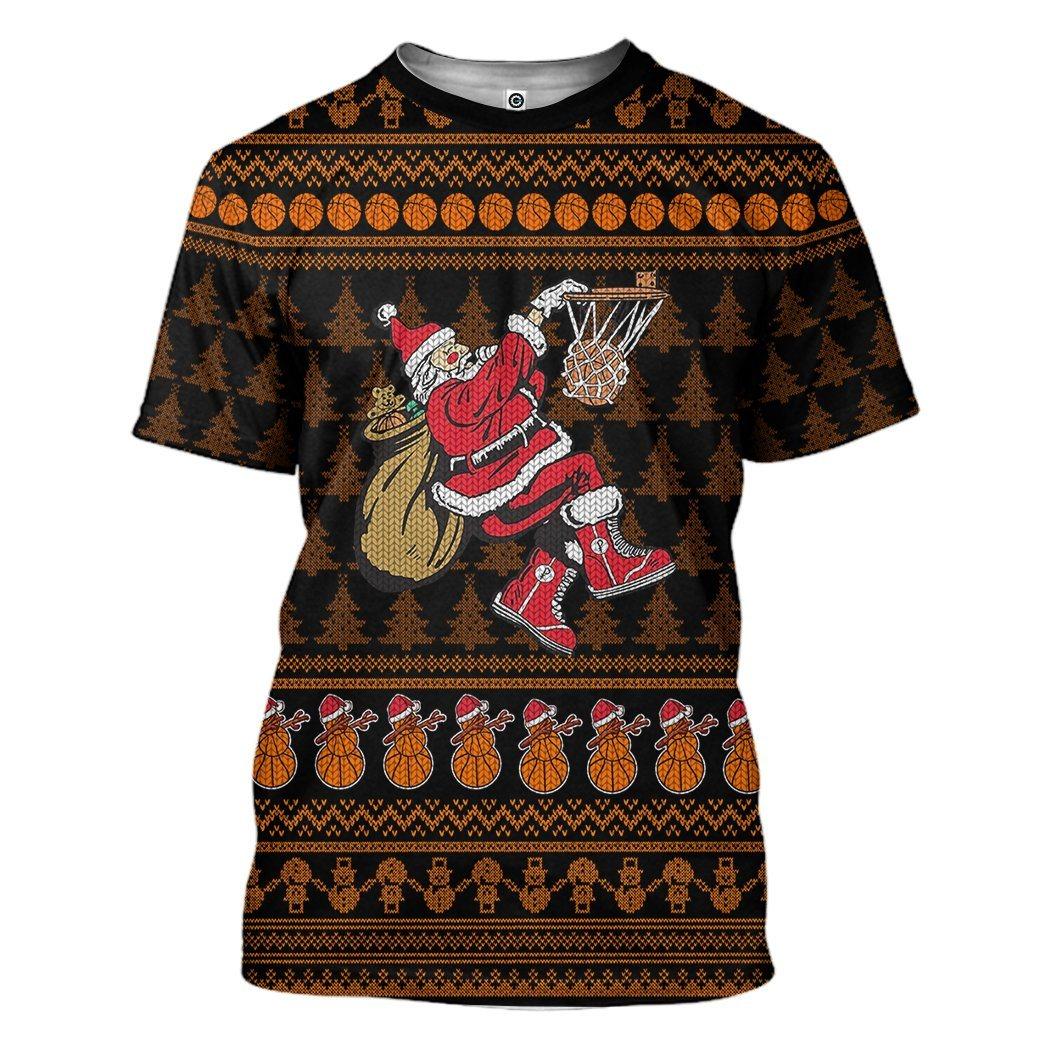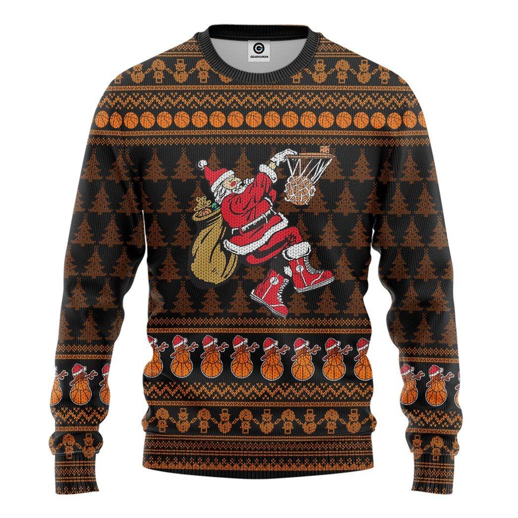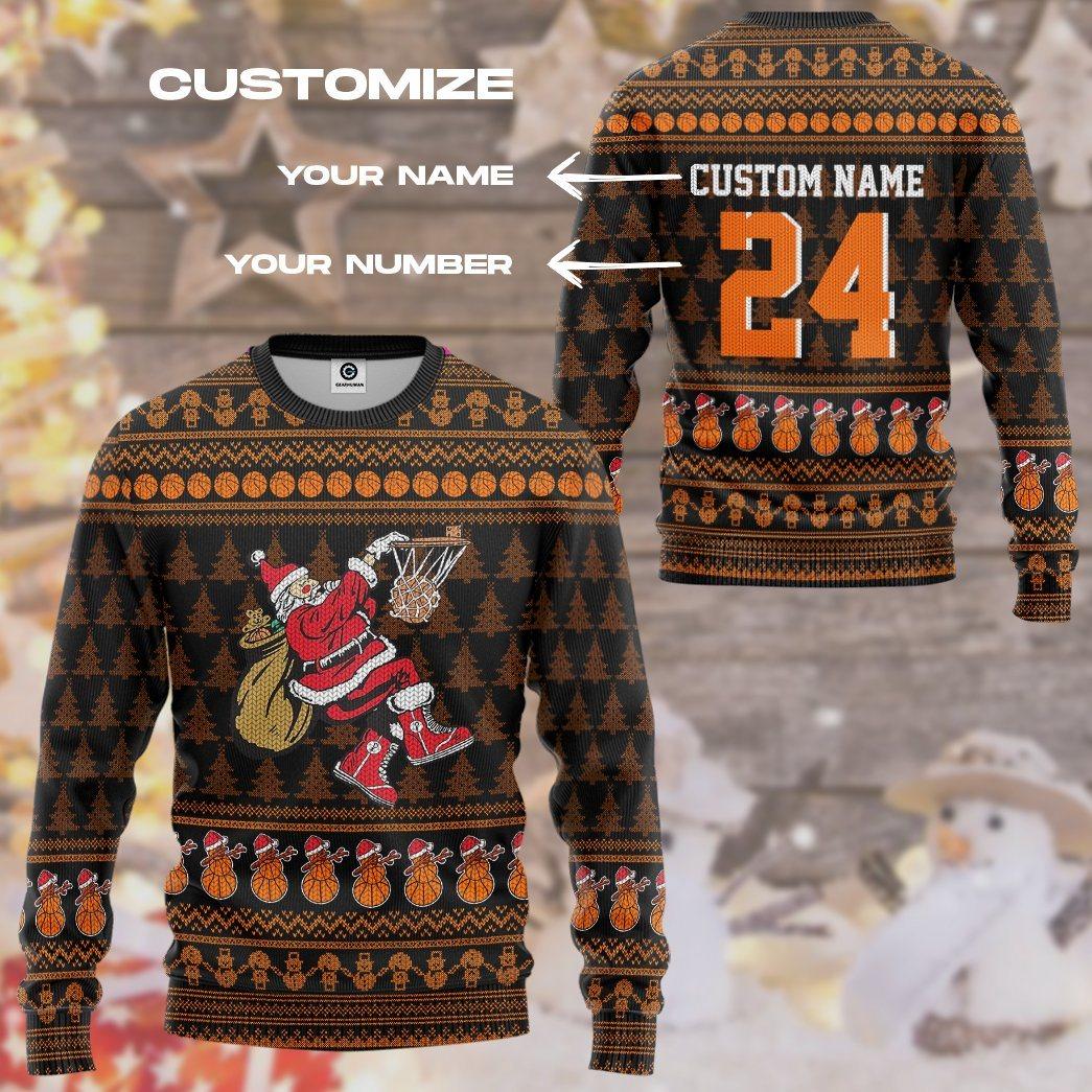Gearhumans 3D 24 Kb Santa Claus Basketball Xmas Ugly Sweater Custom Name Tshirt Hoodie Apparel