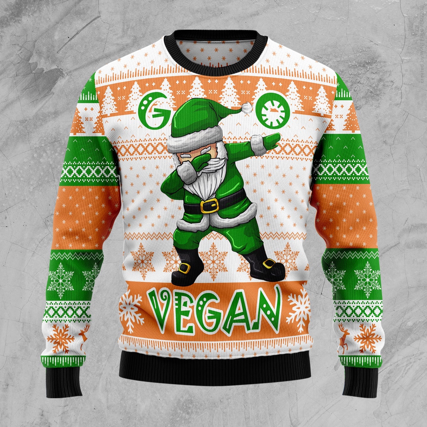 Go Vegan Christmas Graphic Sweater – Tis The Season Christmas Sweater – Ugly Christmas Sweater
