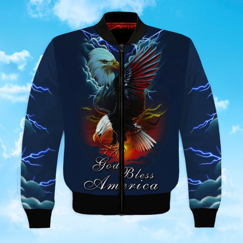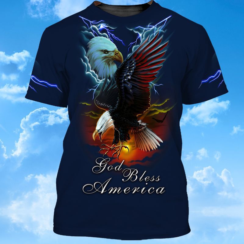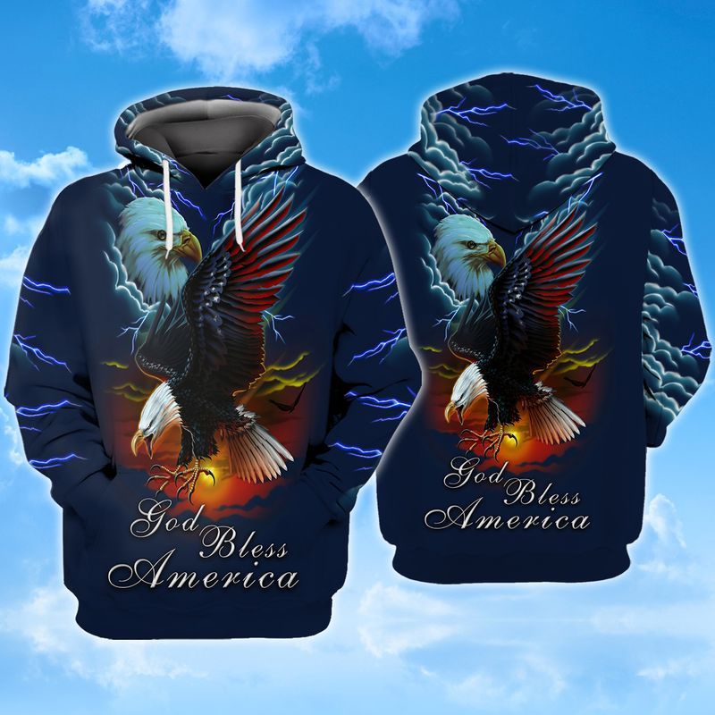 God Bless America Eagle And Thunder Full Printed Hoodie Sweatshirt