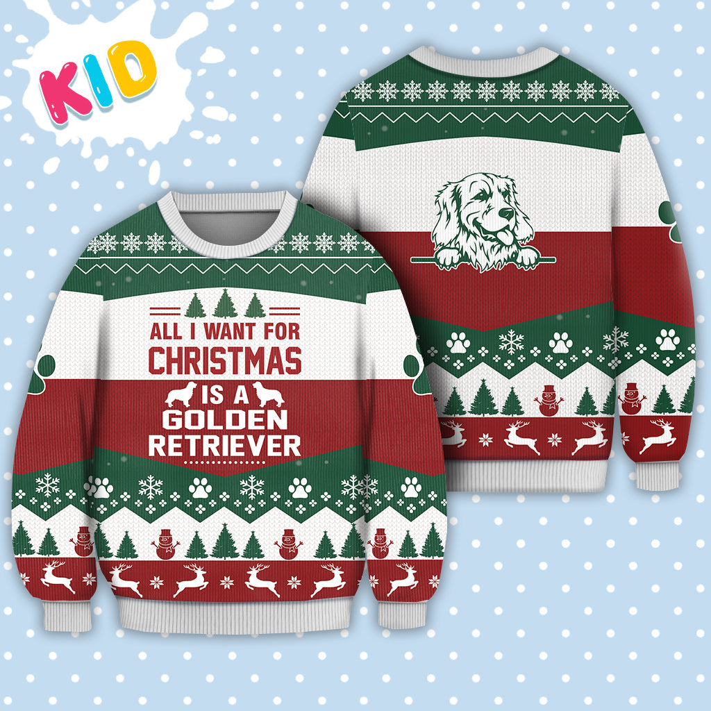 Golden Retriever Dog All I Want For Christmas Ugly Christmas Sweater – Lover Xmas Sweater Gift