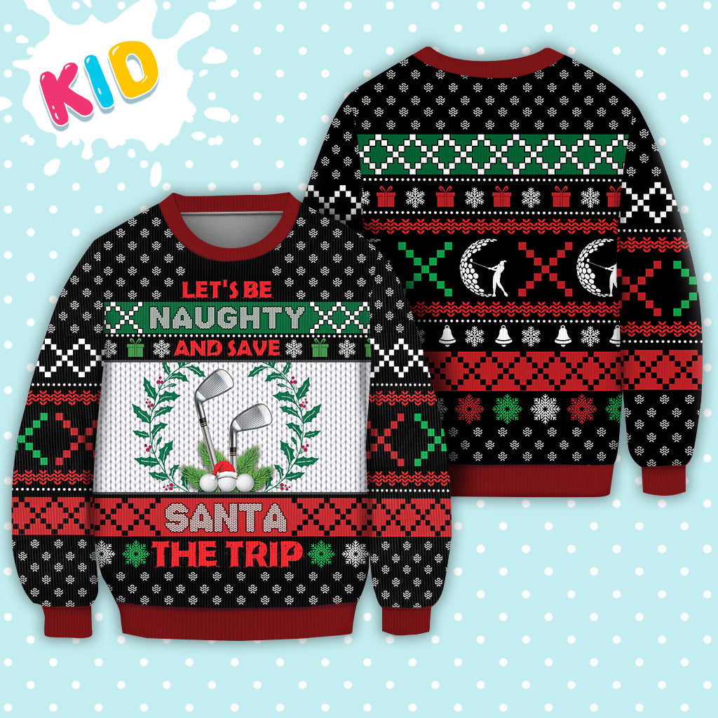 Golf Christmas Let’S Be Naughty And Save Santa The Trip Winter Ugly Christmas Sweater – Lover Xmas Sweater Gift