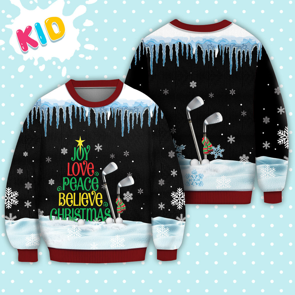 Golf Joy Love Peace Believe Christmas Ugly Christmas Sweater – Lover Xmas Sweater Gift