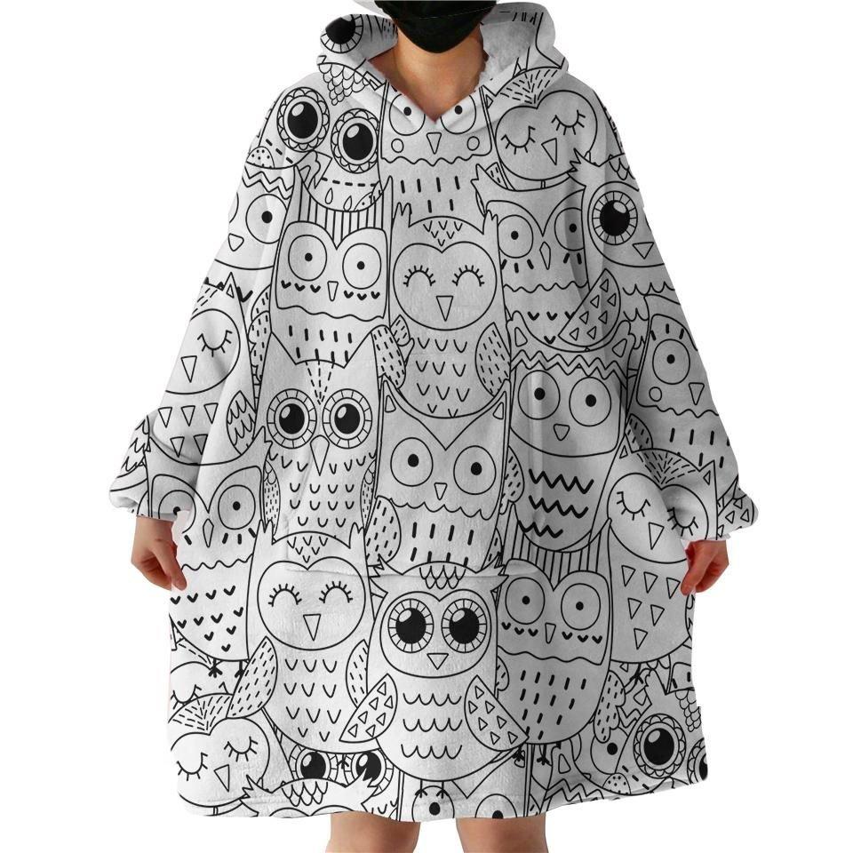 Grey Owl Pattern Oversize Design Oversize Fleece Hoodie Blanket