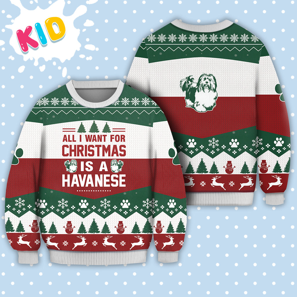 Havanese Dog All I Want For Christmas Ugly Christmas Sweater – Lover Xmas Sweater Gift