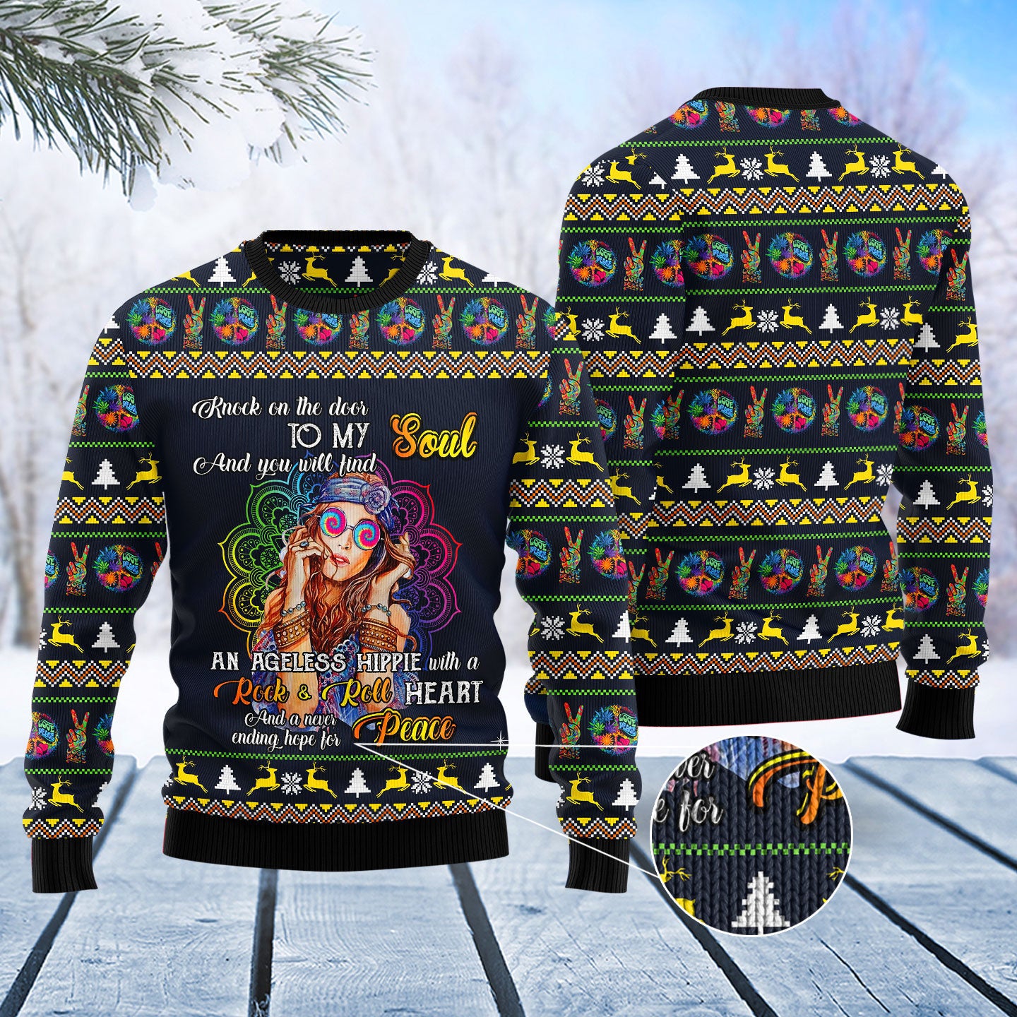 Hippie Girl Ugly Christmas Sweater – Christmas Graphic Sweater