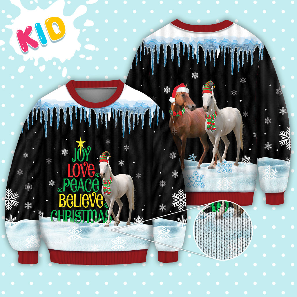Horse Joy Love Peace Believe Christmas Ugly Christmas Sweater – Lover Xmas Sweater Gift