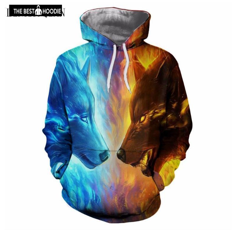 Ice Fire Wolf Hoodies 3D Men Women Sweatshirts Fashion Pullover Autumn Tracksuits Harajuku Outwear Casual Animal Male Jacket Sh5704
