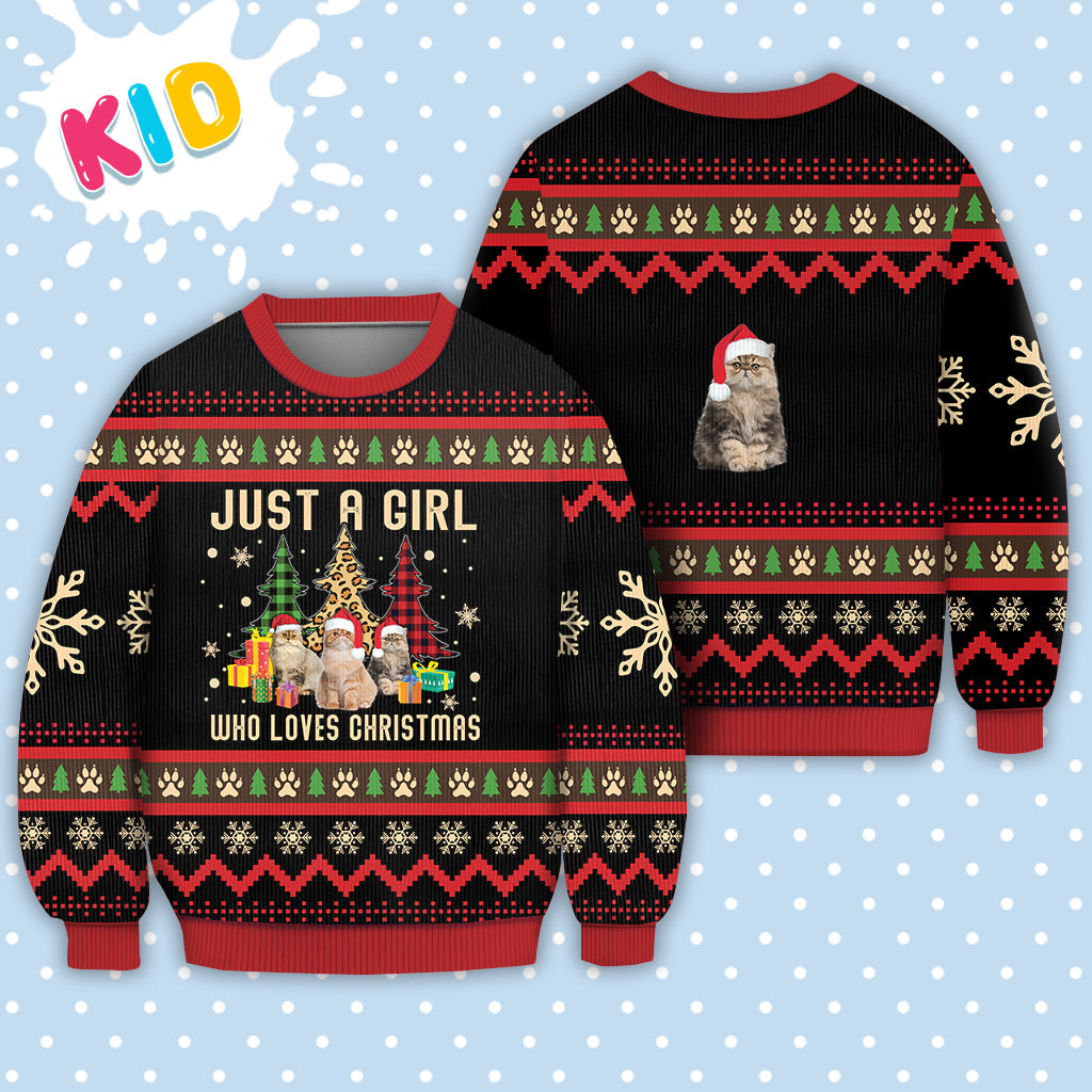 Just A Girl Who Loves Christmas Persian Cat Ugly Christmas Sweater – Best Xmas Gifts
