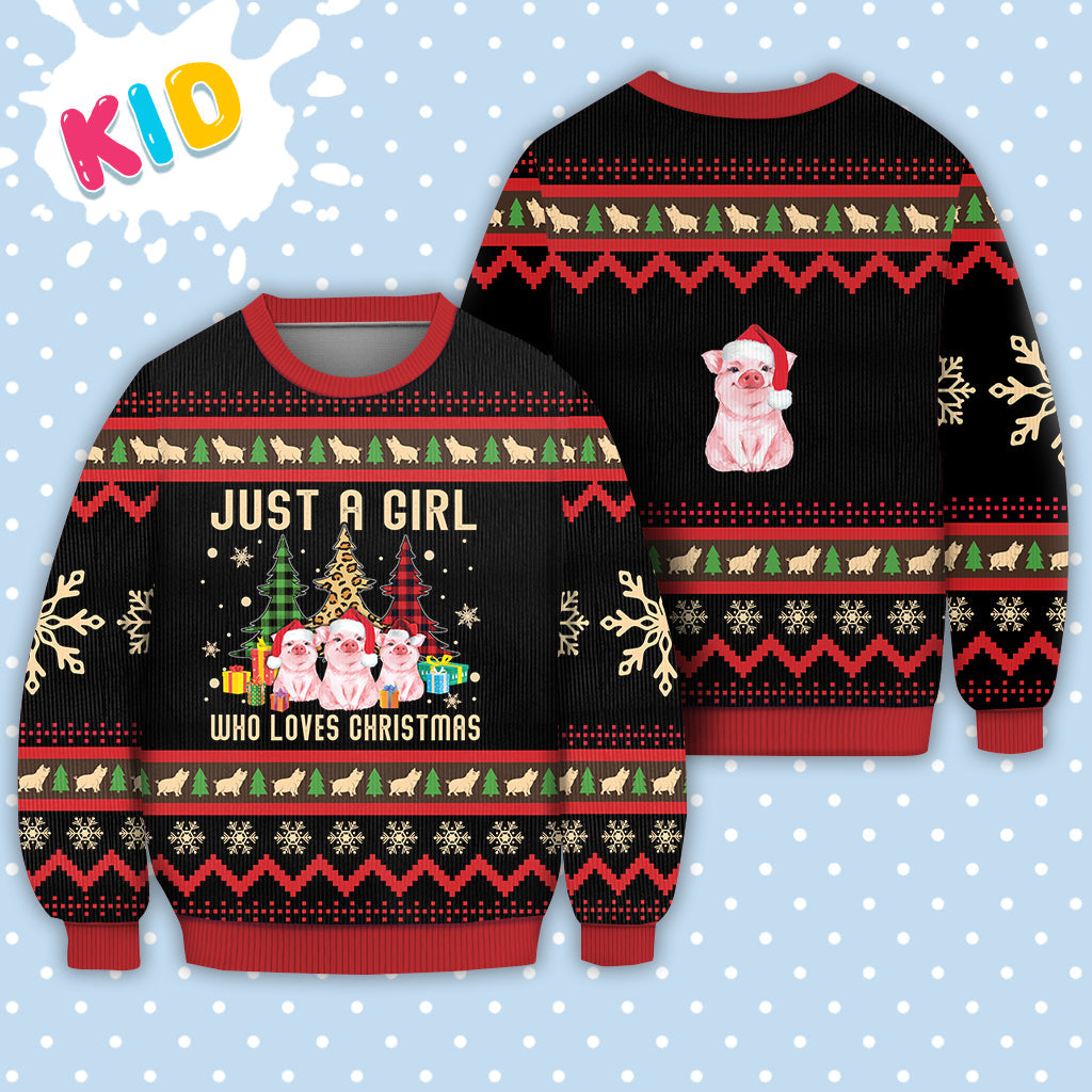 Just A Girl Who Loves Christmas Pig Ugly Christmas Sweater – Best Xmas Gifts