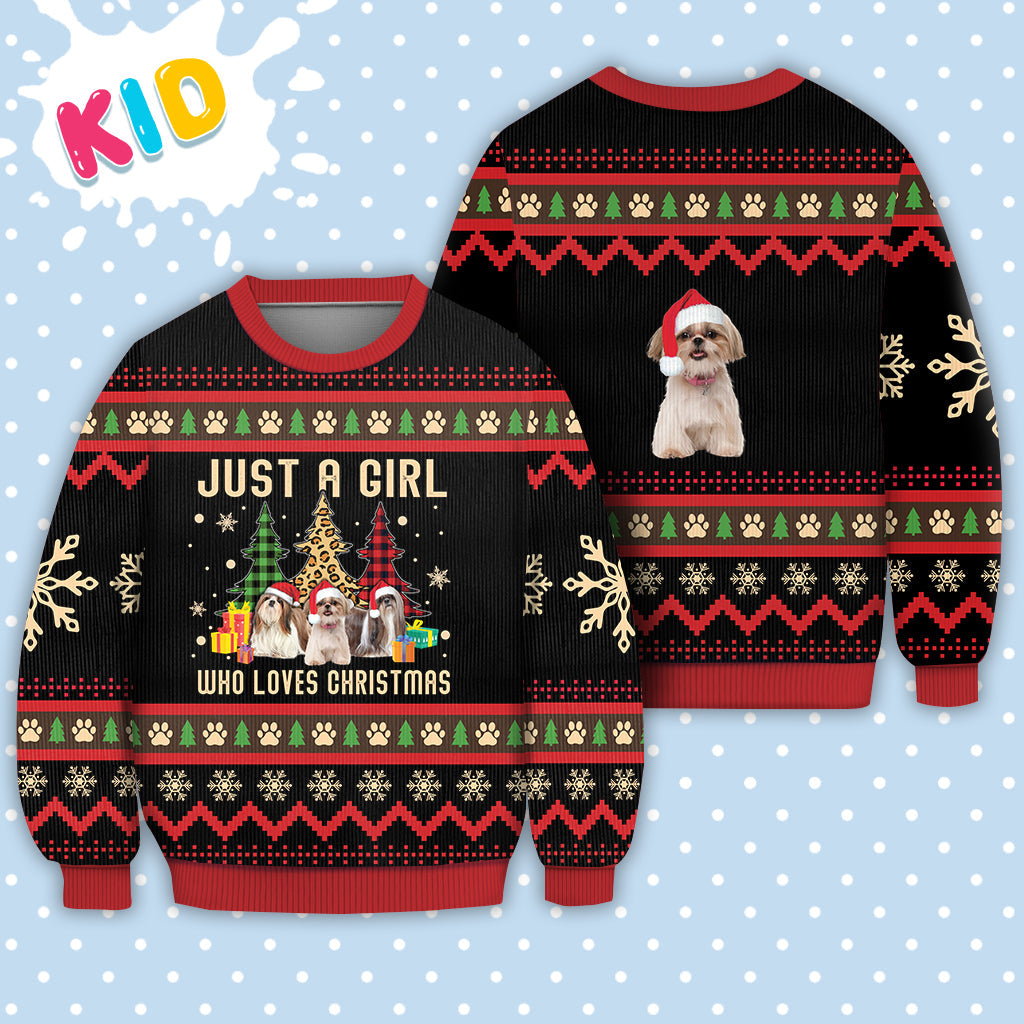 Just A Girl Who Loves Christmas Shih Tzu Dog Ugly Christmas Sweater – Best Xmas Gifts