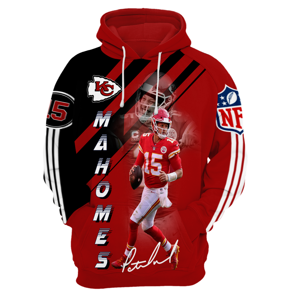 Kc Chiefs 15 Patrick Mahomes 3D Hoodie Hooded Pullover Sweatshirt