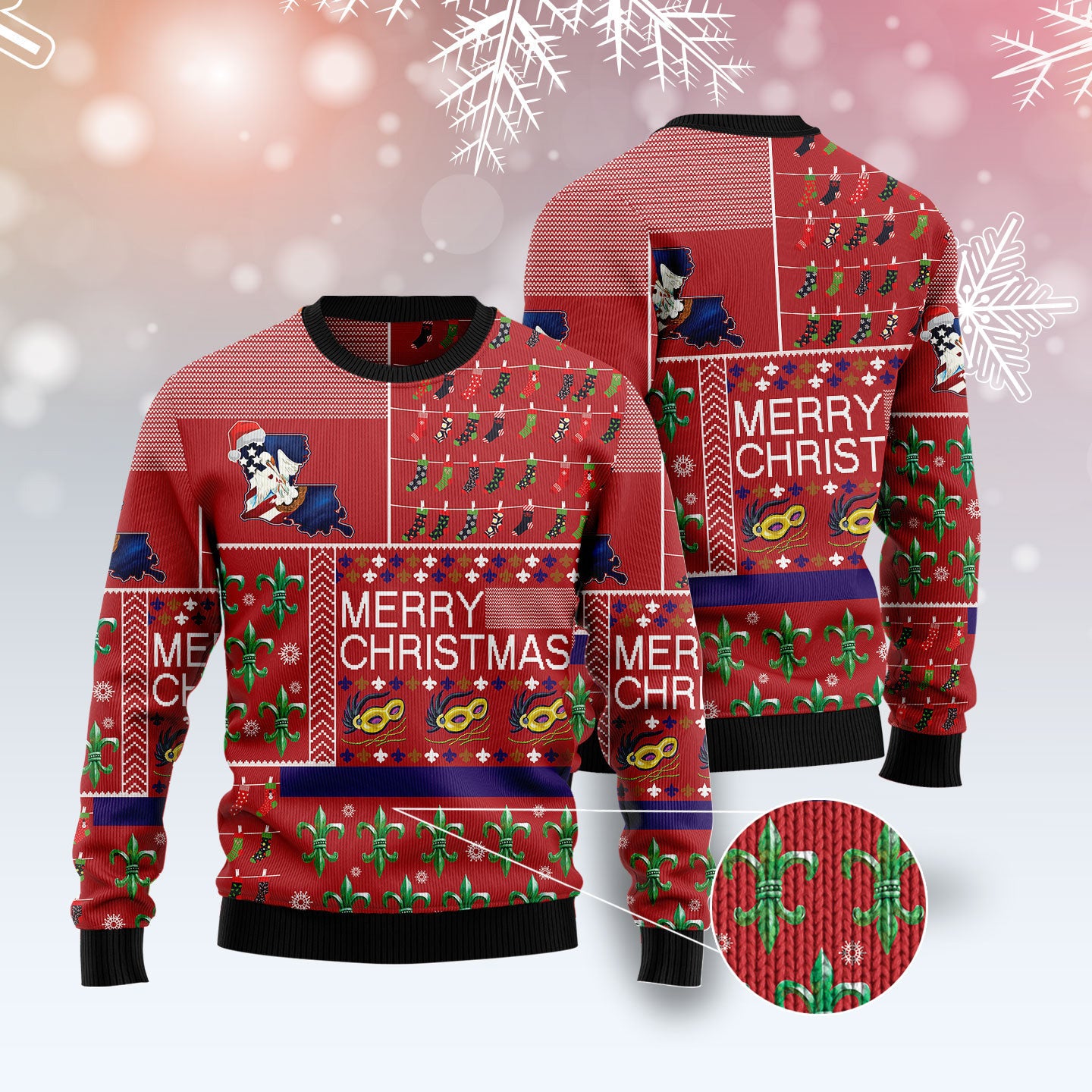 Louisiana Merry Christmas Ugly Christmas Sweater – Funny Family Ugly Christmas Holiday Sweater Gifts