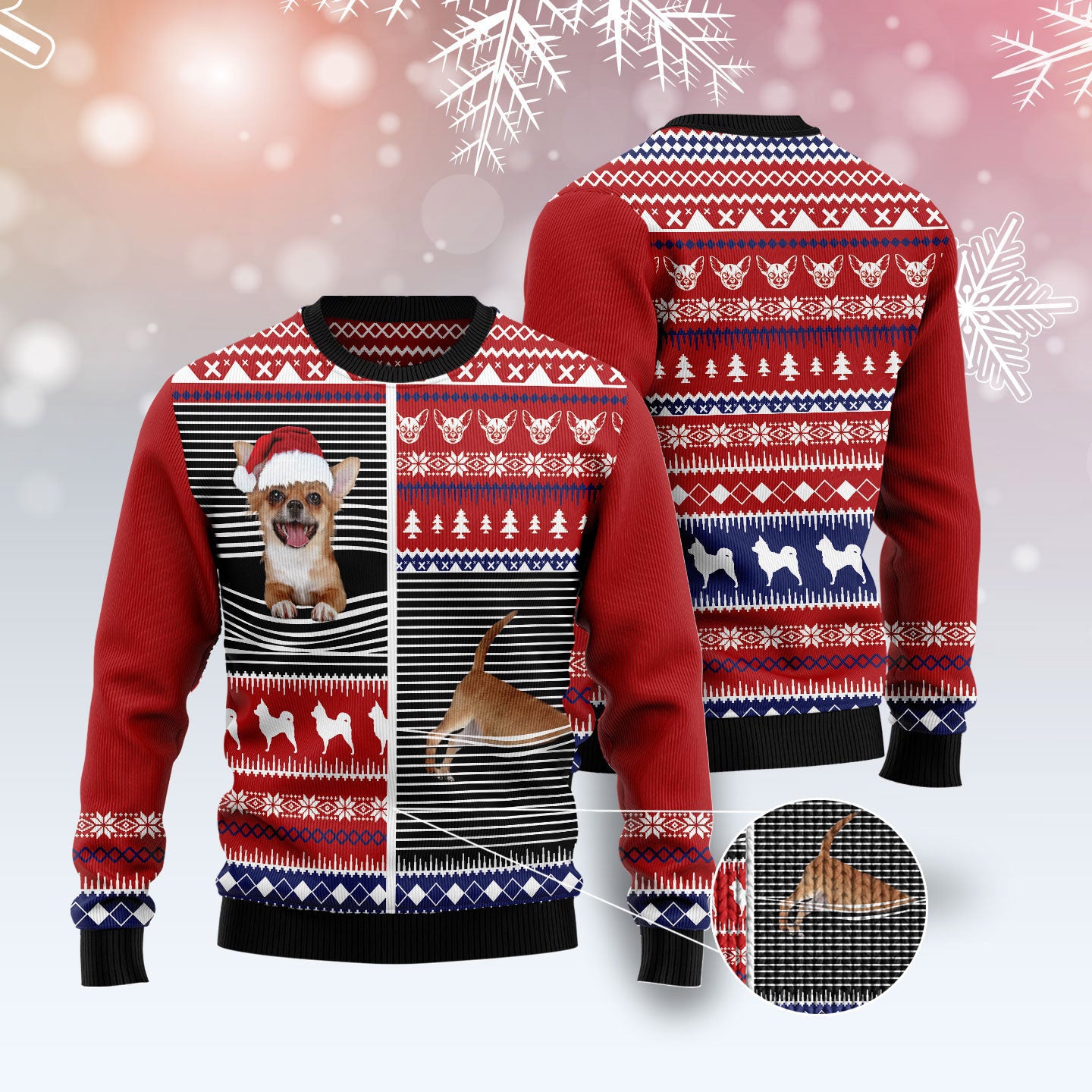 Lovely Chihuahua Unisex Ugly Christmas Sweater – Funny Family Ugly Christmas Holiday Sweater Gifts