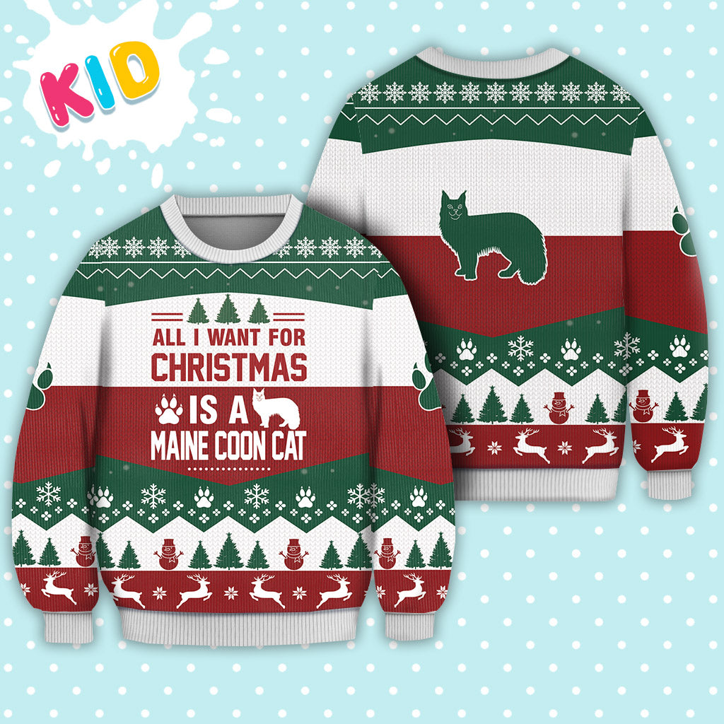 Maine Coon Cat All I Want For Christmas Ugly Christmas Sweater – Best Xmas Gifts