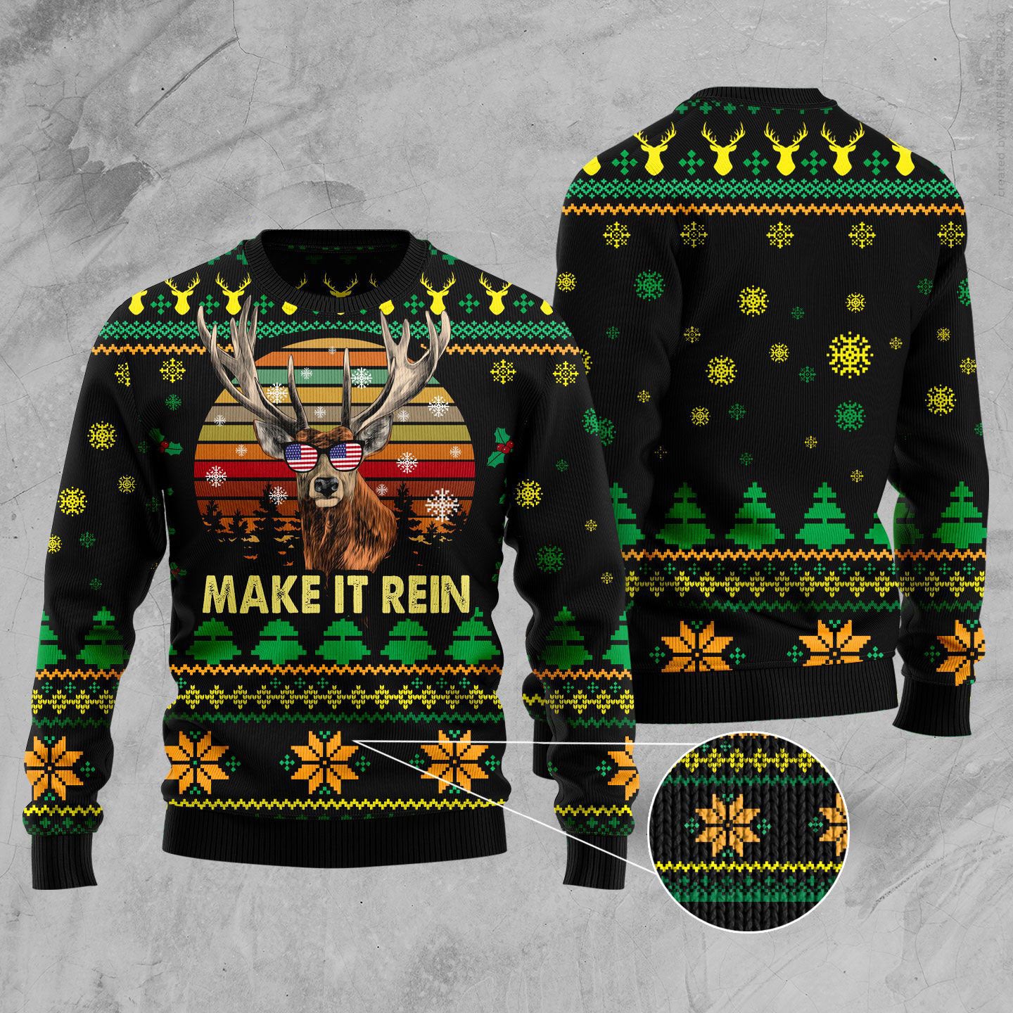 Make It Rein Christmas Graphic Sweater – Tis The Season Christmas Sweater – Ugly Christmas Sweater