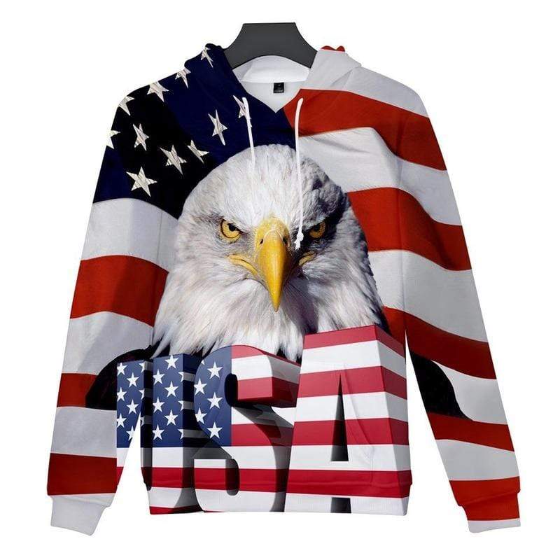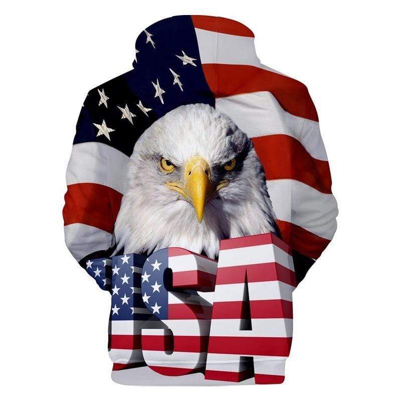 Mens Usa Eagle Hoodie, Mens American Flag Print Pullover Sweatshirt